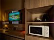 Wi-Fi, кондиционер, светильник, настольные лампы, фен, система безопасности, электронные замки, утюг, обогреватель, душевая кабина, двуспальная кровать, кресла, шкаф для одежды, зеркало, чайник, косметическое зеркало, вид на город, кулер на этаже, вид во двор, меню подушек, туалетные средства, туалет, цифровое тв, телевизор с плоским экраном, мини-холодильник, гостиничная парфюмерия, рабочий столВ номере