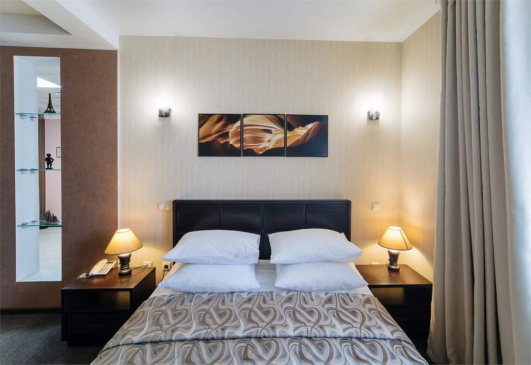 Комфортный номер в респектабельном стиле с удобной мебелью и современным дизайном. Нежные оттенки придают интерьеру мягкость и уют, привносят ощущение теплоты и спокойствия.Услуги и удобства