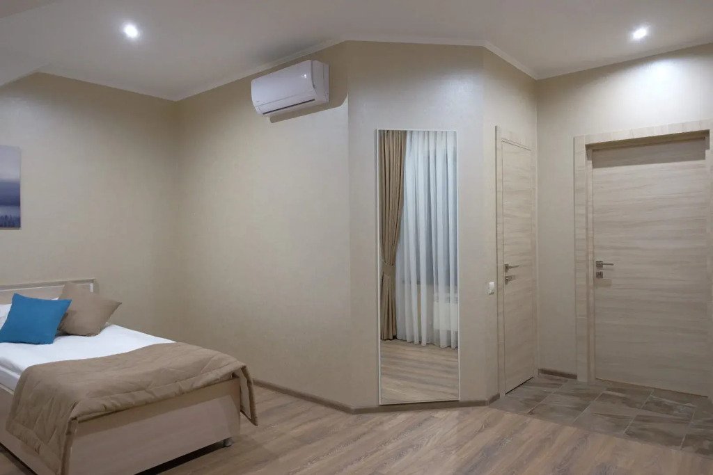 В номере вы найдёте телевизор. Оснащение зависит от выбранной категории номера.