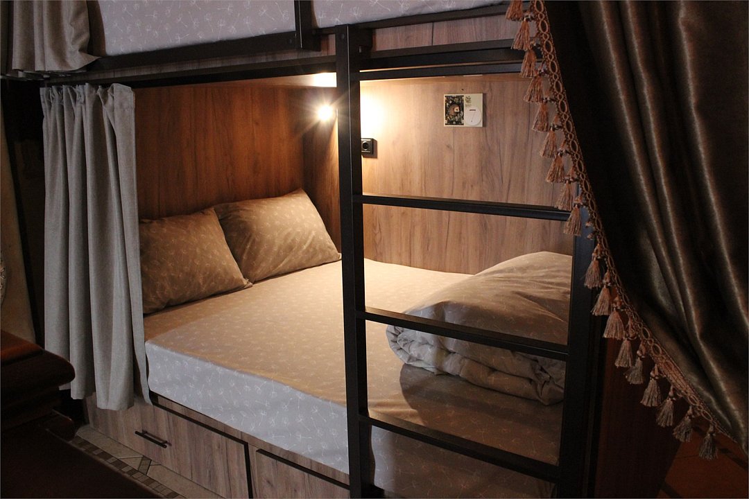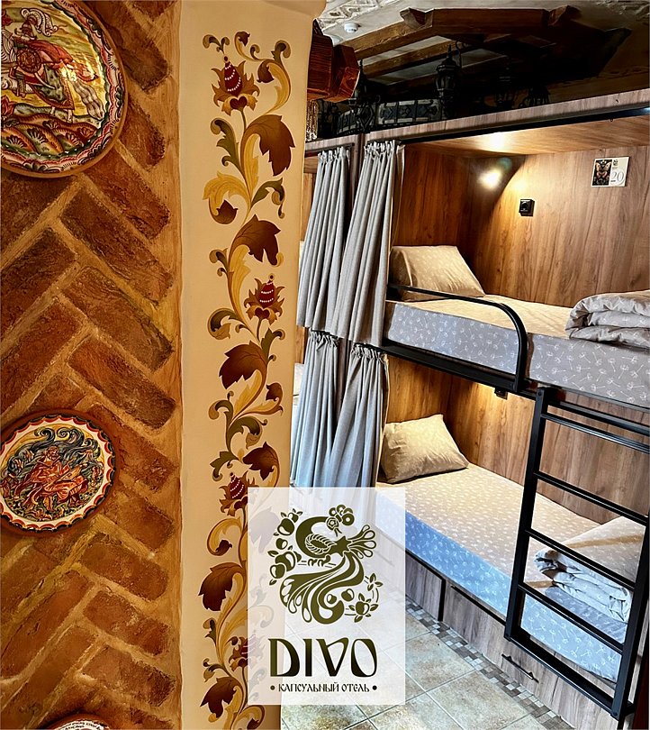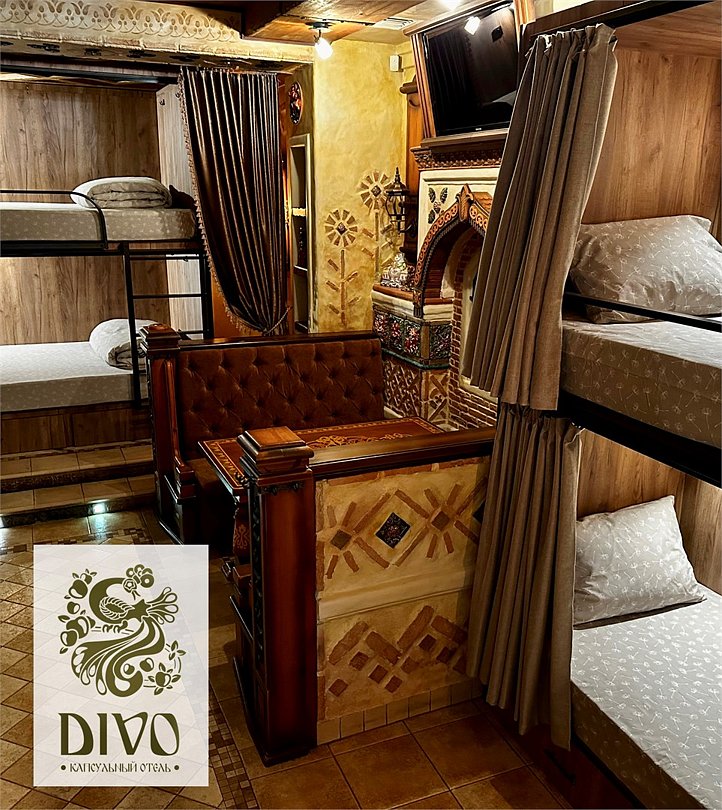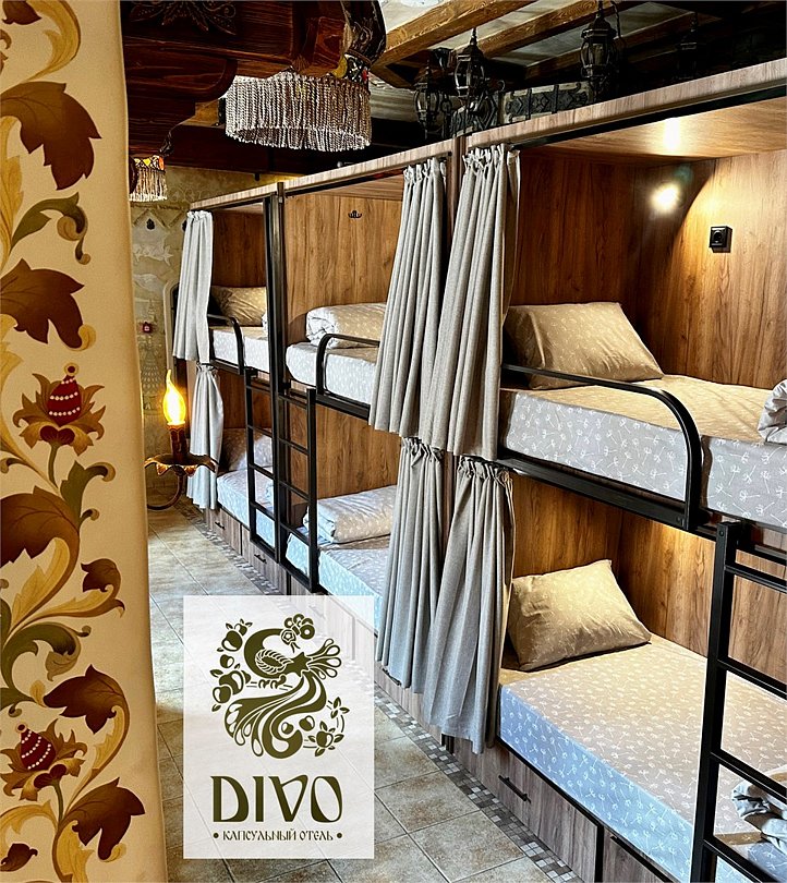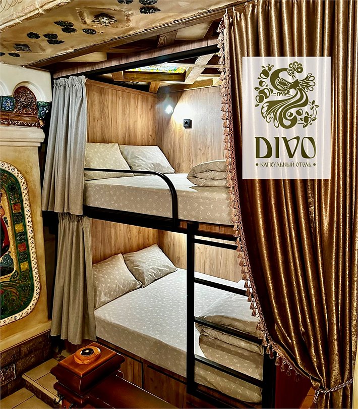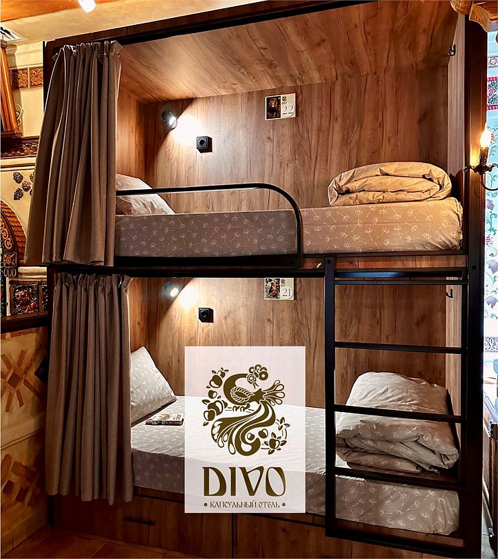 Двухместная дизайнерская капсула Divo Comfort со всеми удобствами оснащена всем необходимым для комфортного отдыха одного или двух гостей. В капсуле Divo Comfort к услугам постельное белье из натурального хлопка, ортопедический матрас, плотная штора, комплект полотенец, индивидуальная розетка, светильник, полочка, крючки для одежды. Персональный шкаф для хранения личных вещей с замочком, отдельный обувной шкаф и шкаф для верхней одежды, а так же выдвижной шкаф под спальным местом. Гостям предлагаются беруши, тапочки и косметические принадлежности за дополнительную плату.Услуги и удобства