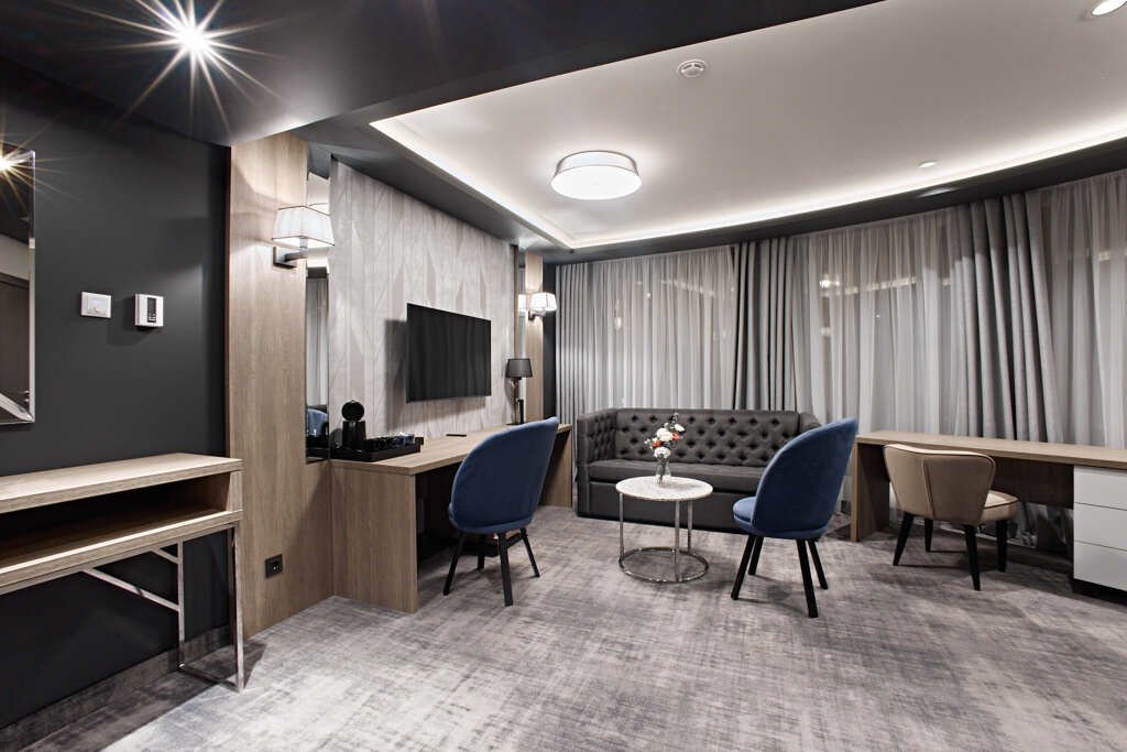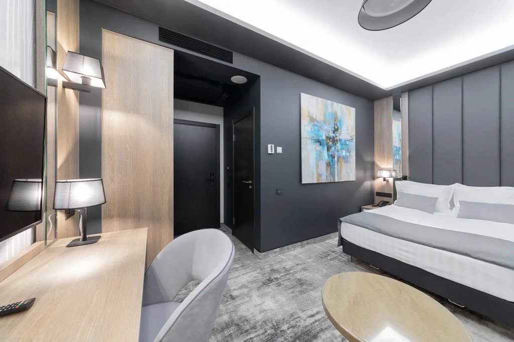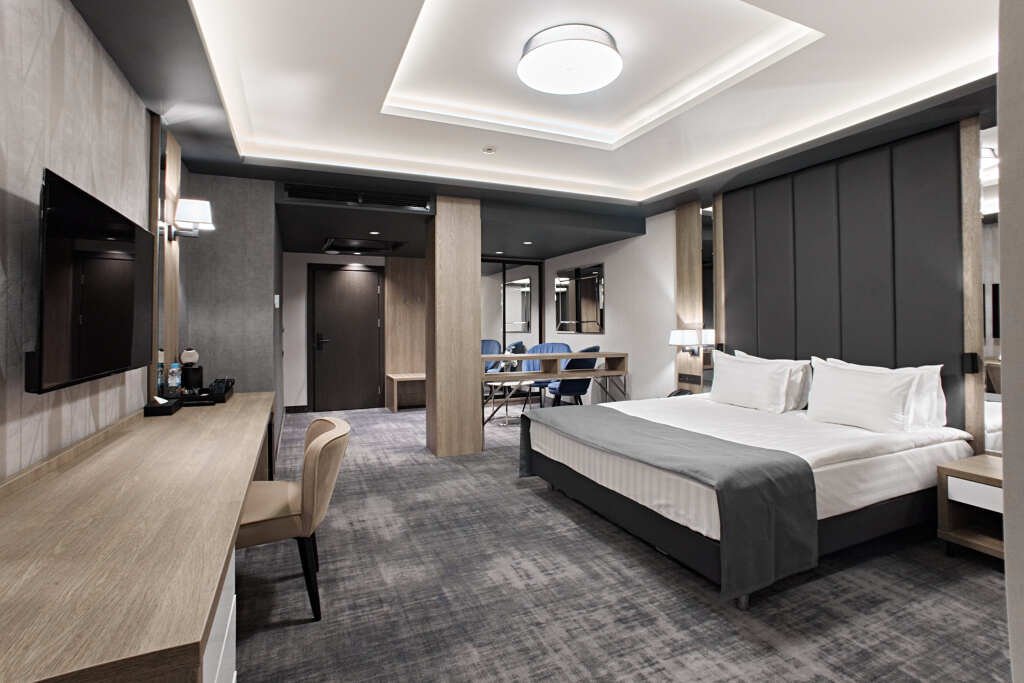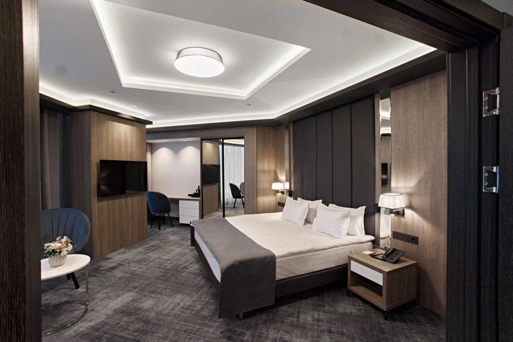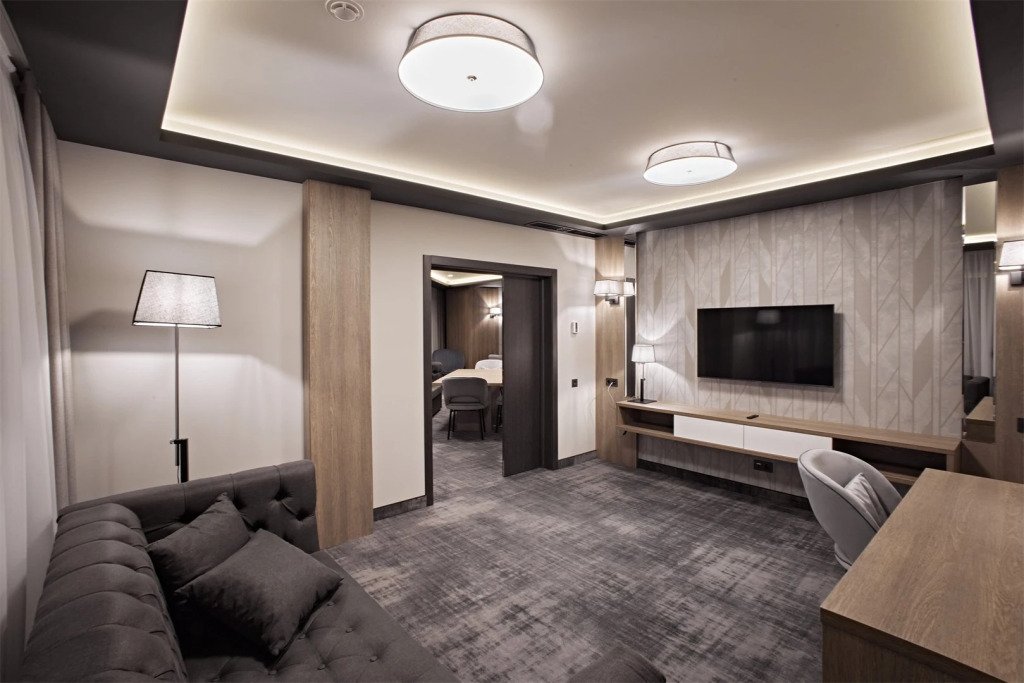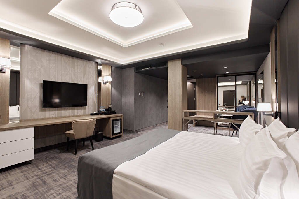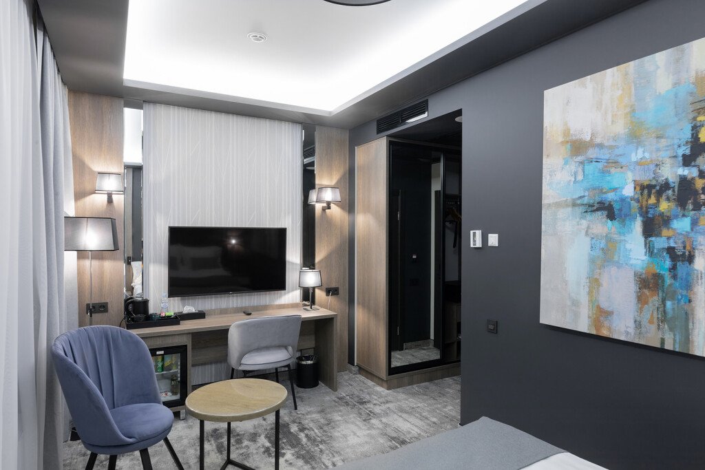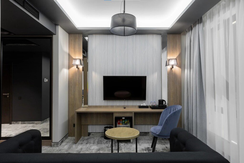 В номере гостей ждут телевизор и мини-бар. Оснащение зависит от выбранной категории номера.