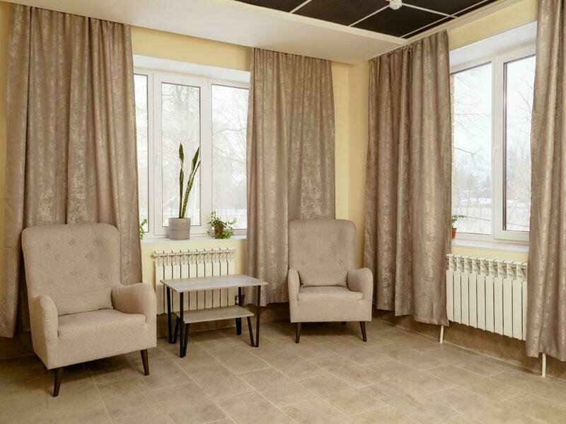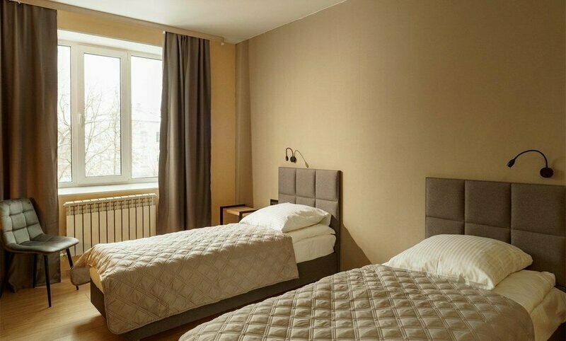 Гости располагаются в стандартных одноместных и двухместных номерах, каждый из которых оснащен санузлом, душевой кабиной и другими удобствами: телевизор, холодильник и электрический чайник, фен, комплект постельного белья и полотенец. Здесь также есть прачечная, библиотека, к услугам гостей круглосуточный ресепшен.