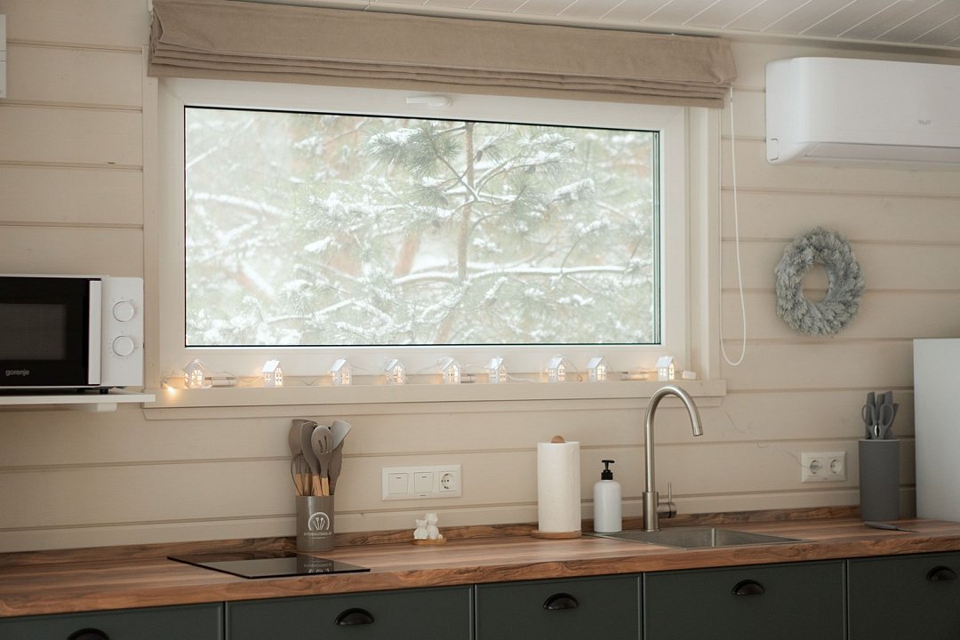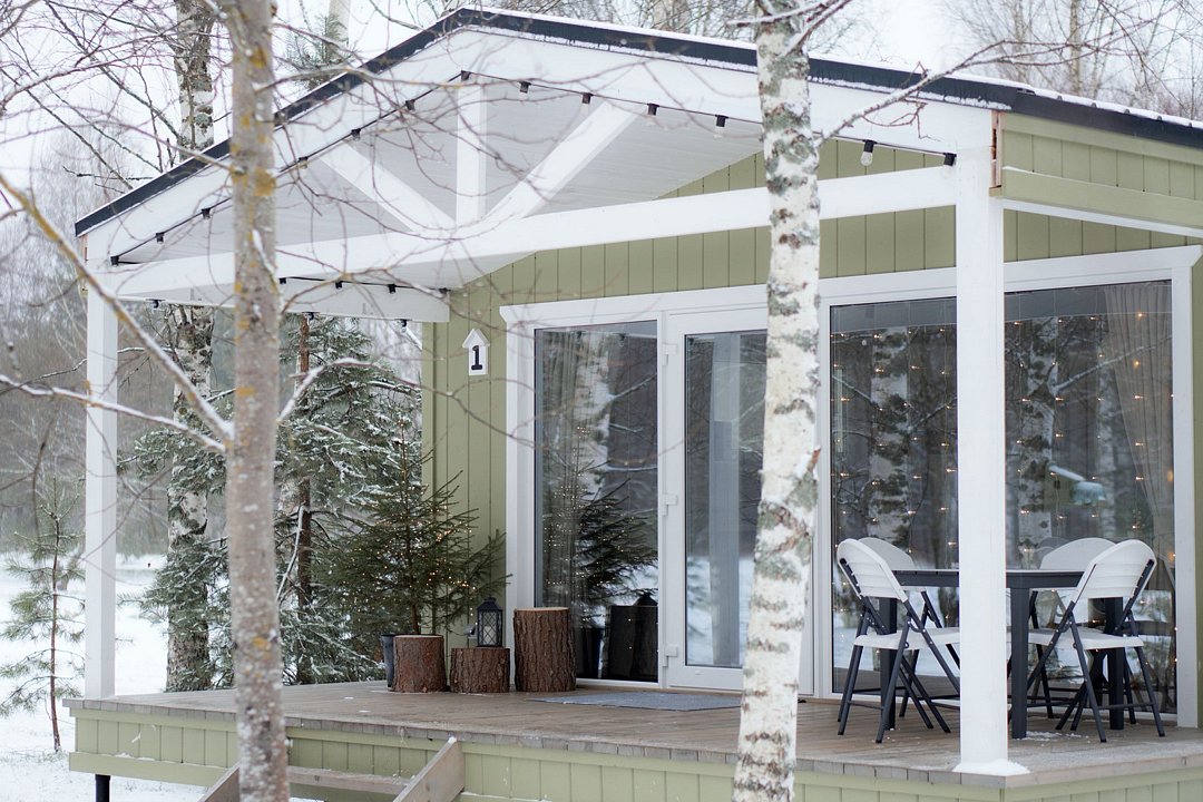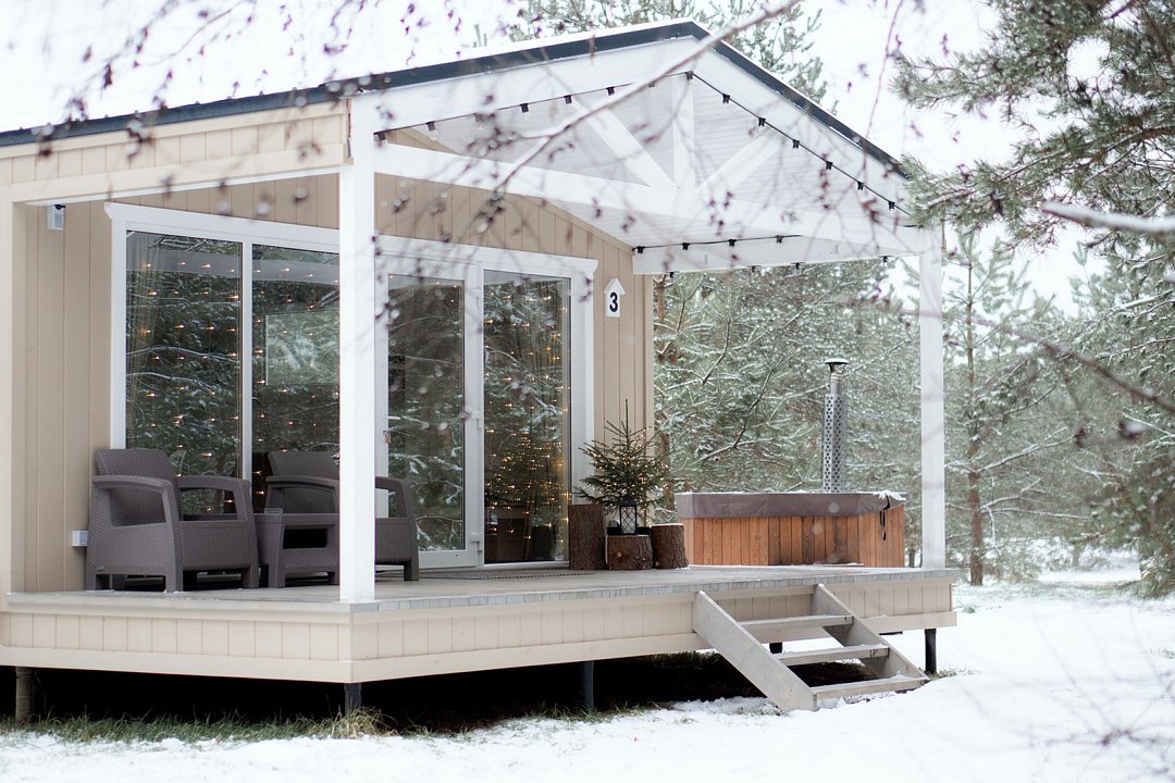 Просторный коттедж с собственной террасой, банным чаном и мангалом. В доме оборудованная кухня с индукционной плитой, микроволновой печью, электрочайником и капсульной кофемашиной Особое расположением коттеджа для уединения, где окна спальни с красивым видом на лес. Спальня с кроватью Queen Size, панорамным окном. Гостиная с раскладным двухместным диваном. Возможна установка дополнительной раскладной кровати и детской кроватки.Услуги и удобства