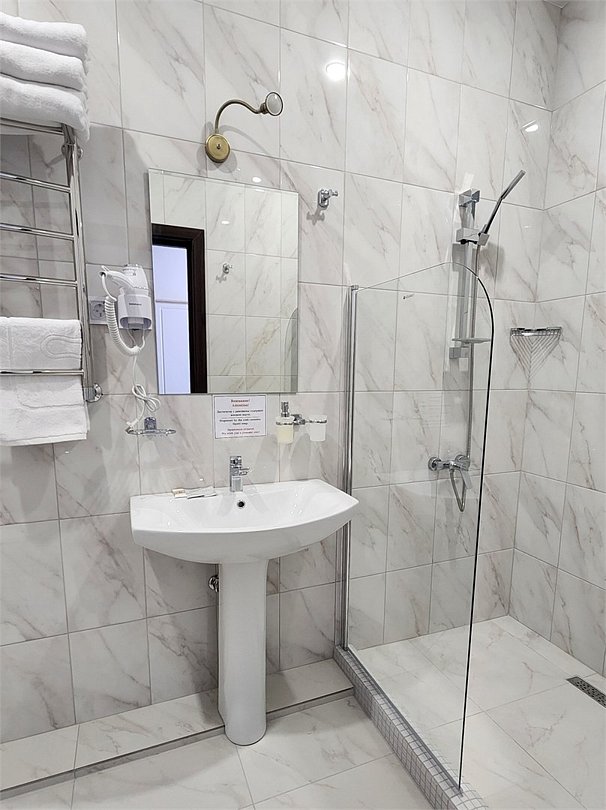 Wi-Fi, IP-телефон, светильник, фен, электронные замки, ванная комната, санузел, банные полотенца, тапочки, гигиенические средства, шкаф для одежды, вешалки, письменный стол, багажная тумба, зеркало, чайный набор, сейф, чайник, раковина, питьевая вода, гостиная зона, отопление, вид на сад, кулер на этаже, вид во двор, паркет, высокие потолки, стаканы, стул, тумба, туалетный столик, туалетные средства, туалет, сплит-система, вид на парк, мини-холодильник, телевизор со Smart TV, номер для некурящих, фитнес-зона, уборка номера, шапочка для душа, мыло, затемняющая штора, без питомцев, тропический душВ гостиничном номере
