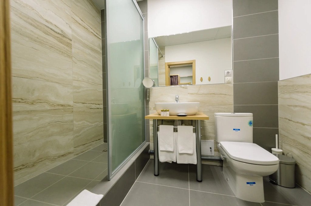 В номере гостей ждут телевизор и халат. Оснащение зависит от выбранной категории номера.