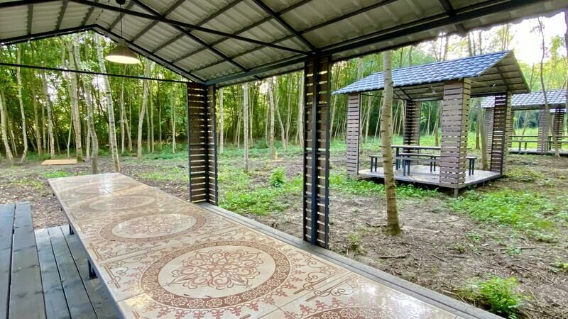 - Беседки укомплектованы всем необходимым: свет, мангал, вода, холодильник;