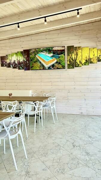 - Закрытая веранда вместимостью до 50 персон со своей полноценной кухней, мангалом и посудой. Сплит система, большой телевизор, музыкальный центр.
