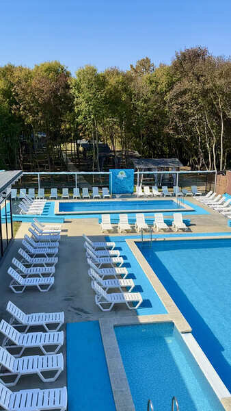 Тип бассейна: открытый бассейнВода в бассейне: подогреваемый бассейнРядом с бассейном: душ, шезлонгиРазмеры: 6 x 12 мПлощадь: 72 м²Глубина: 150 смЧасы работы с 10:00 до 22:00.