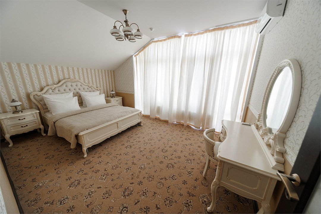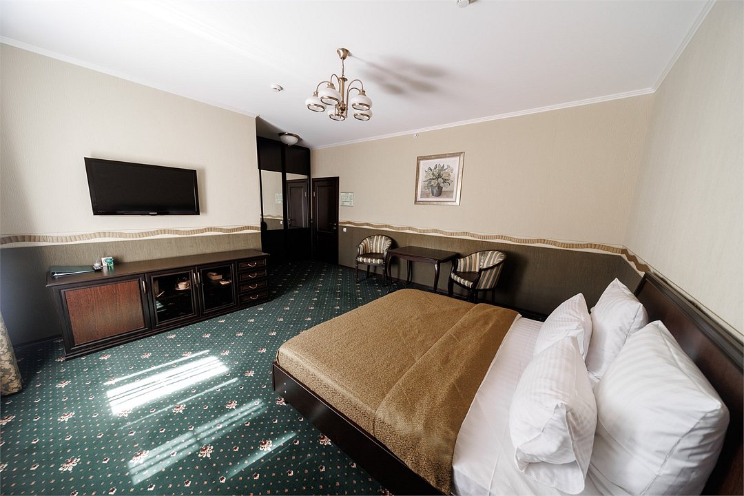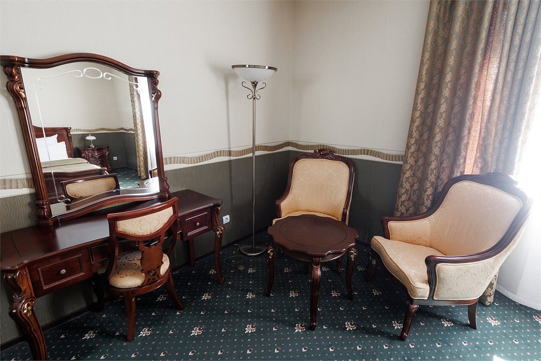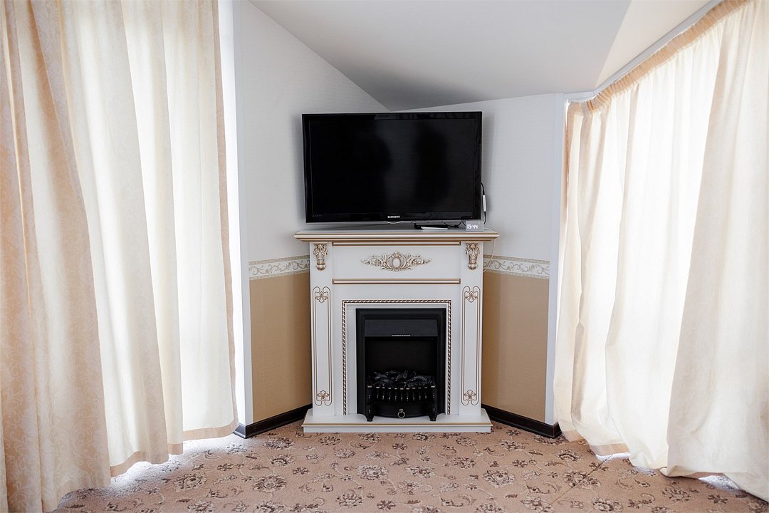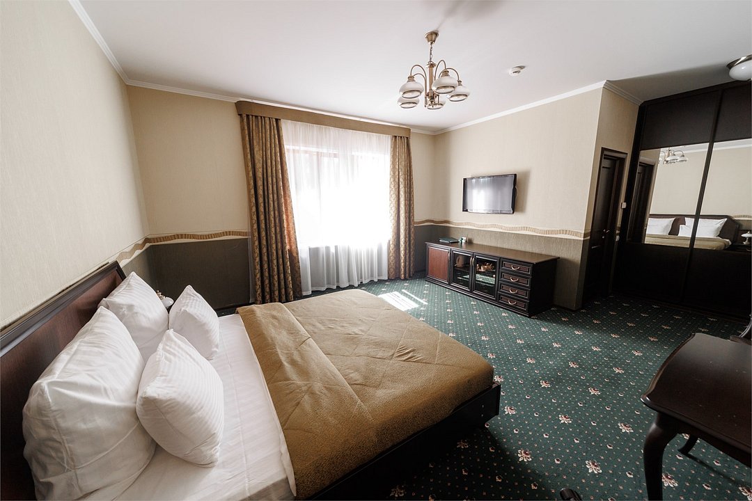 Wi-Fi, кондиционер, светильник, фен, система безопасности, радио, ванна, ванна или душевая кабина, банные полотенца, тапочки, гигиенические средства, двуспальная кровать, диван, кресла, стулья, шкаф для одежды, вешалки, журнальный столик, письменный стол, стол для переговоров, обеденный стол, зеркало, эксклюзивная мебель, чайный набор, обслуживание номеров, информационная карта, меню, сейф, чайник, унитаз, раковина, мягкая мебель, косметическое зеркало, обеденная зона, гостиная зона, ковровое покрытие, отопление, душ, кулер на этаже, вид на реку, мини-холодильник, телевизор со Smart TV, без питомцевВ номере