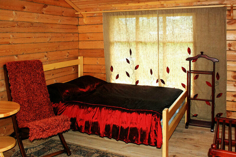 Если Вы на усадьбе, присмотритесь к деревянной мебели в домиках. Местный столярный цех производит кресла-качалки и напольные вешалки. Понравившуюся модель Вы можете заказать. В разобранном виде изделие можно увезти даже в малогабаритном автомобиле.