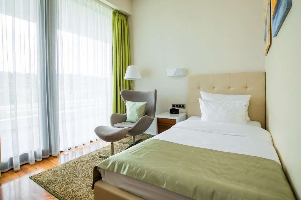 Каждый номер оснащен современной мебелью, высокоскоростным Wi-Fi, системой климат-контроляю. Гостям доступны стандартные номера, люксы или коттеджи.