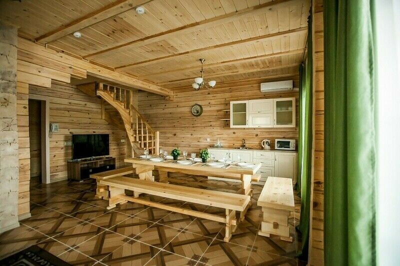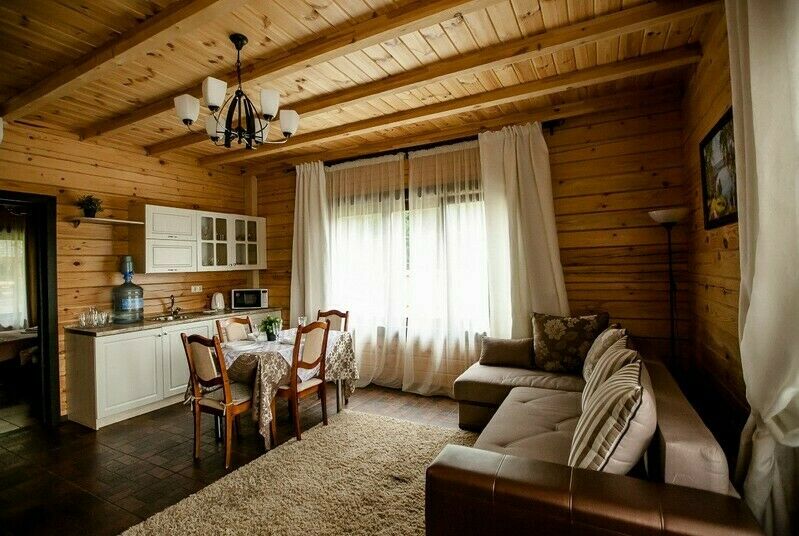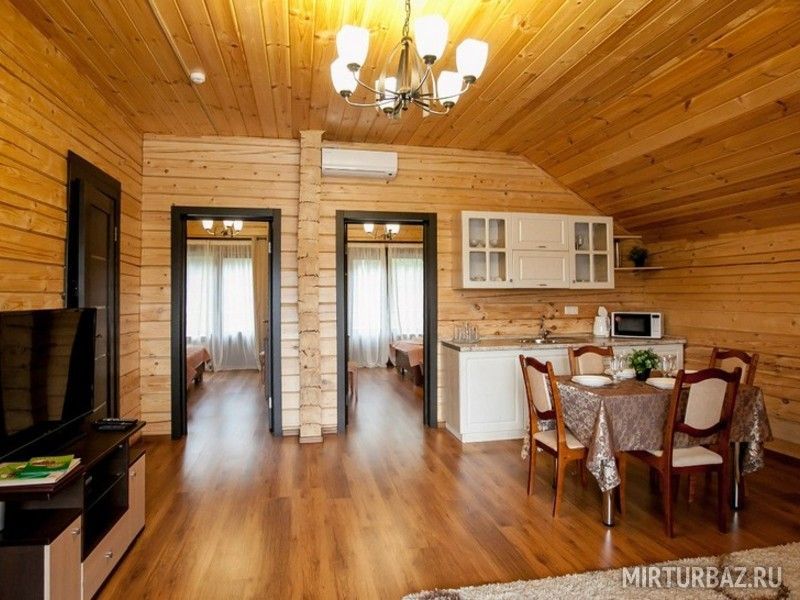 В номере есть современная гостиная с кухонной и обеденной зоной. К услугам гостей набор посуды, электрочайник, минибар, холодильник, микроволновая печь, зона отдыха с домашним кинотеатром, две спальни с кроватями,внутренний телефон с бесплатным выходом в городскую сеть,высокоскоростной доступ в Интернет,спутниковое ТВ (Триколор тв, более 100 каналов),кондиционер,финская сауна,терраса,беседка - барбекю.