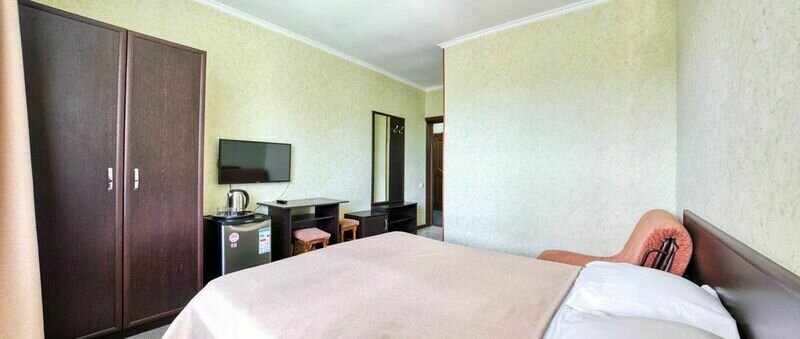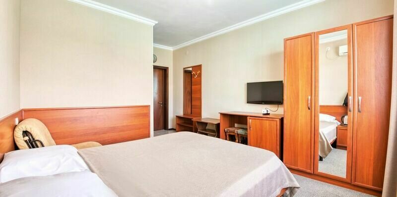 Семейный отдыхДостоинстваДо моря от отеля напрямую всего 300 метров, но нужно обходить — дорога идет через железнодорожные пути. Невысокая цена, но и живописного вида нет.