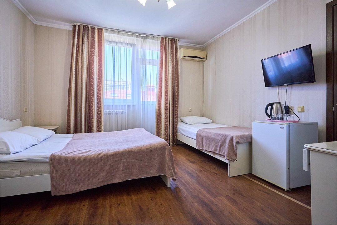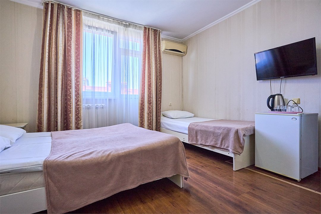 3-МЕСТНЫЙ СТАНДАРТ без балкона/ с балконом 18 кв.м, двуспальная кровать, односпальная кровать, вид во двор, одна комната, доп. место - еврораскладушкаУслуги и удобства