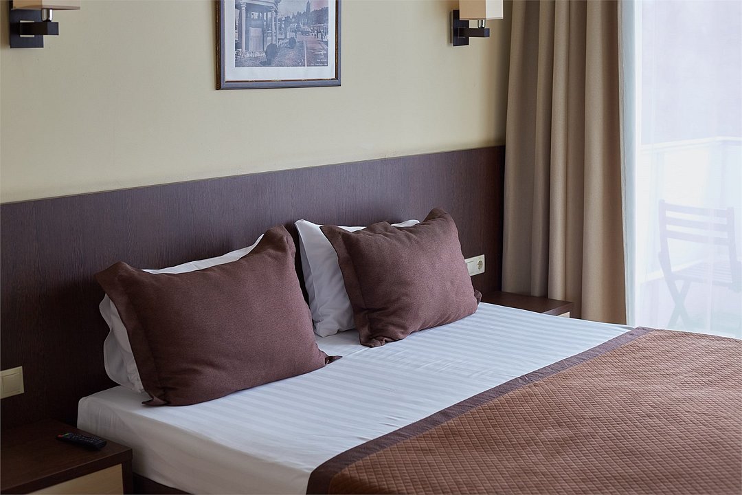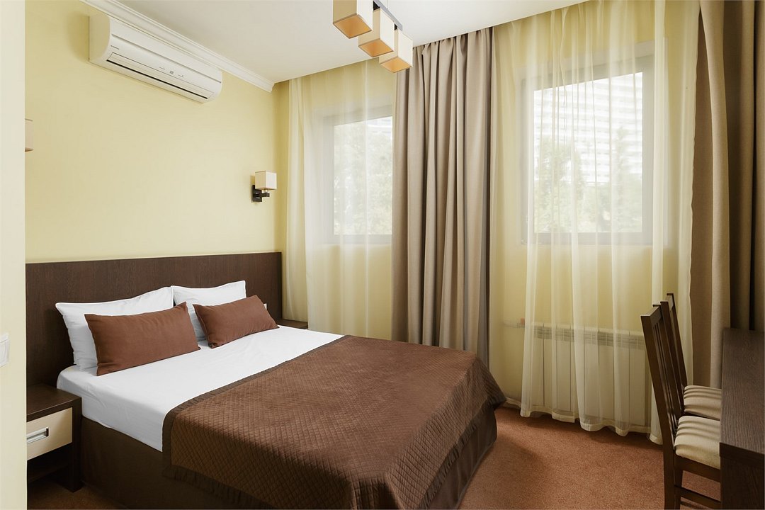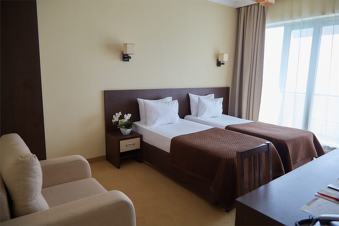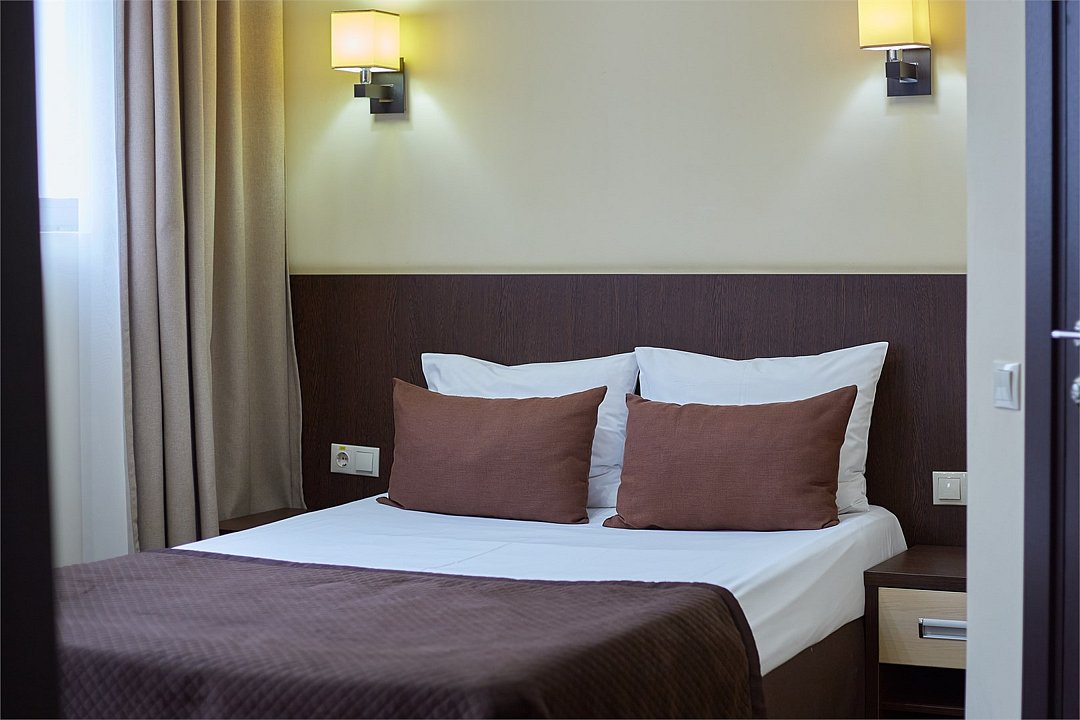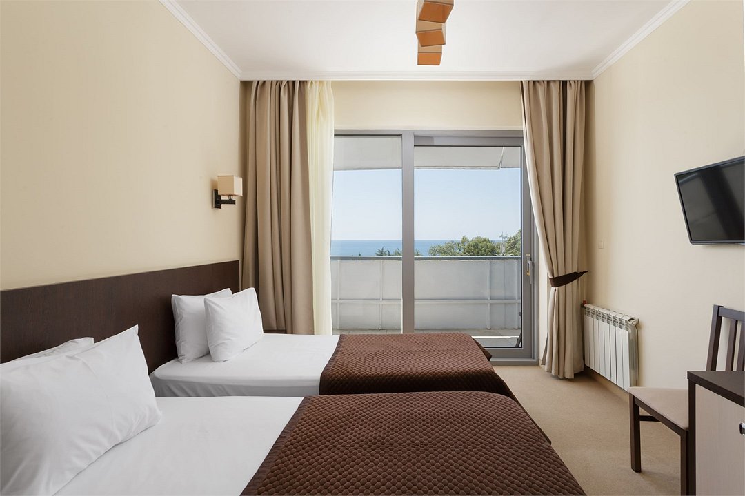 Двухместный однокомнатный номер площадью от 20,4 м2 до 23,2 м2* с новой, современной мебелью. Все номера этой категории с балконами. Туалетные принадлежности предоставляются единоразово в день заезда. Халат предоставляются за дополнительную оплату. Для самых маленьких гостей предоставляются бесплатно: детская кровать (манеж),ванночка, горшок, подставка для раковины под запрос при наличии. *Площадь номера указана с балконом.Услуги и удобства