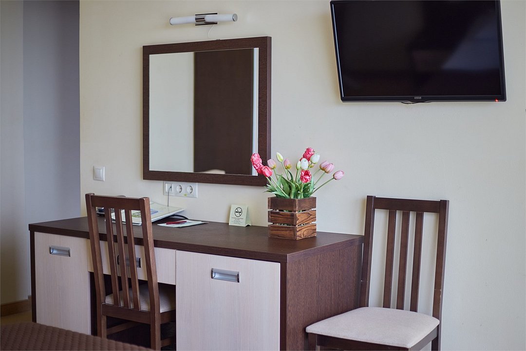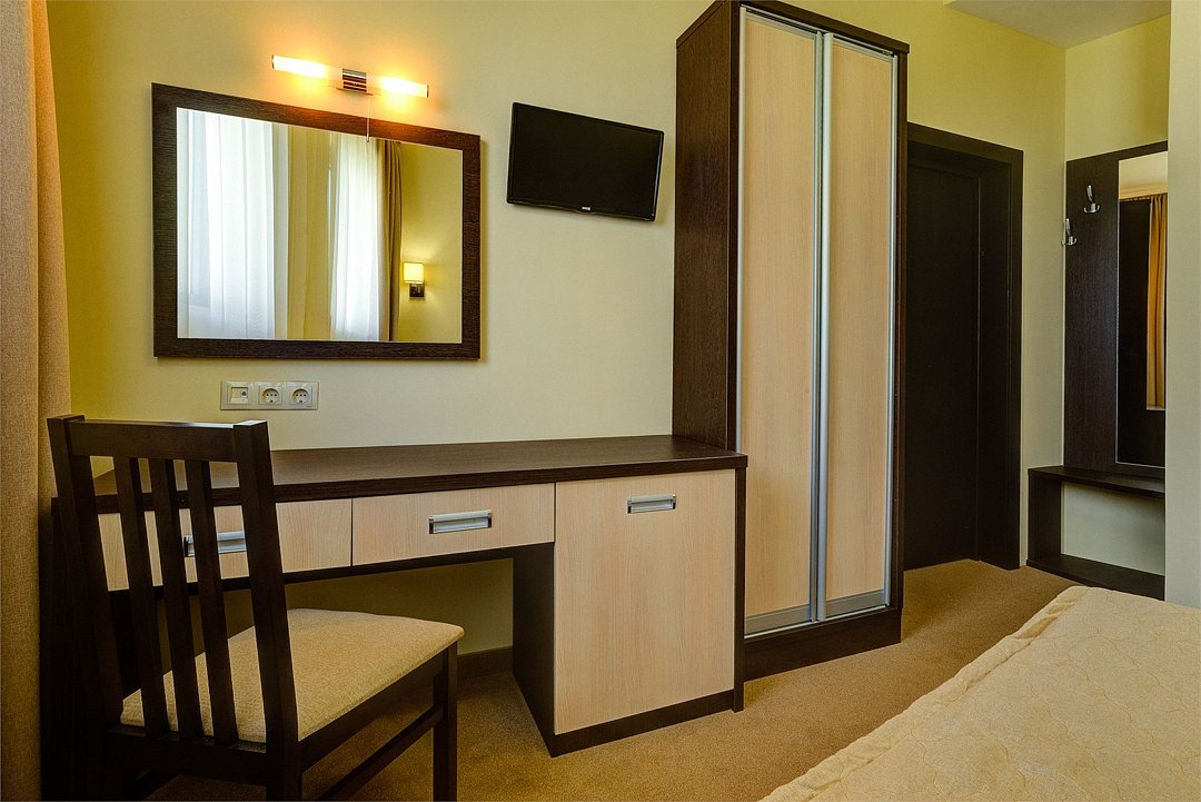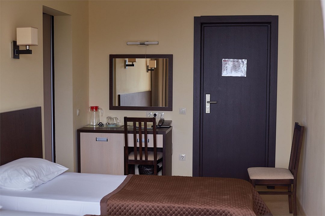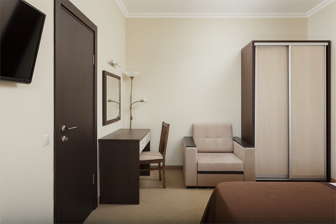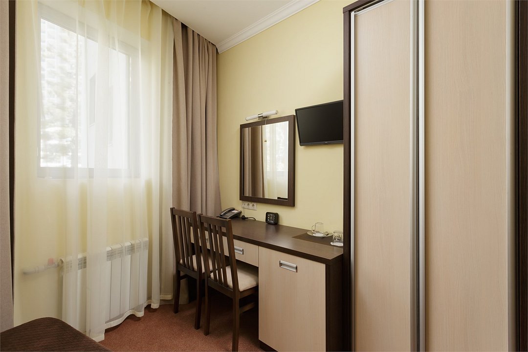 Однокомнатный одноместный номер, без балкона, площадью 13,2 м2. Оснащен новой современной мебелью. Туалетные принадлежности предоставляются единоразово в день заезда. Халат предоставляются за дополнительную оплату. Для самых маленьких гостей предоставляются бесплатно: детская кровать (манеж),ванночка, горшок, подставка для раковины.Услуги и удобства