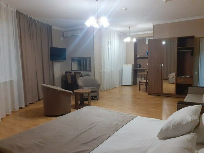 Путешествие с семьейЗамечательный отель.Ехали издалека, до Сочи чуть чуть-чуть не дотянули, решили переночевать по пути.Отель располагается в замечательном месте- не далеко от трассы и совершенно изолирован от шума. В номерах очень хорошее белье,чисто,горячая вода и тепло!Уютно и со вкусом. Завтраки вкусные и сытные (состоят из двух блюд и десерта)! Хозяйка очаровательная женщина с прекрасным чувством юмора. Нам очень всё понравилось, всем рекомендуем и к кратковремменному отдыху и к длительному пребыванию.