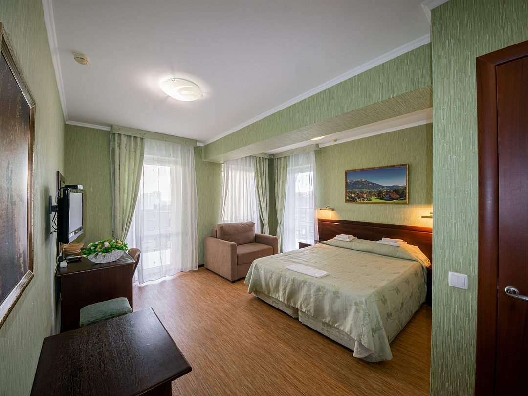 номер со всеми удобствами и возможностью разместить дополнительное место в виде кресло кроватиВ номере