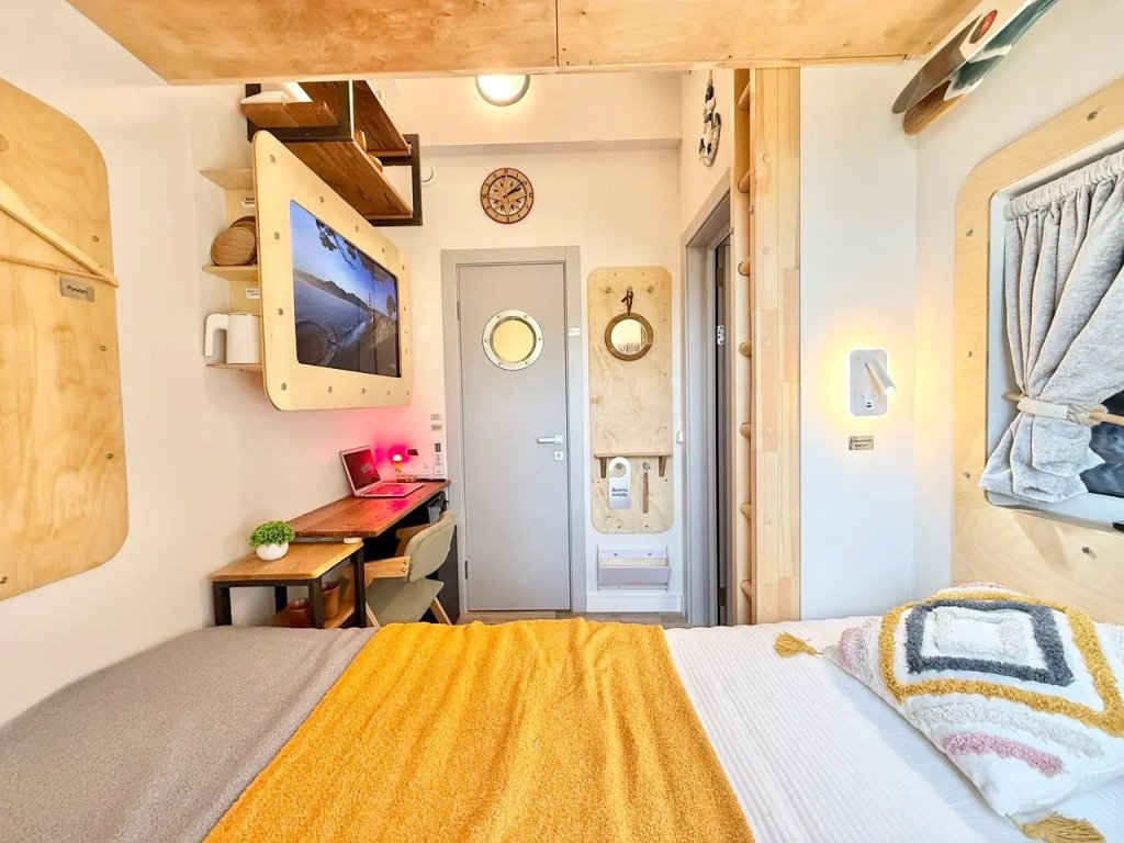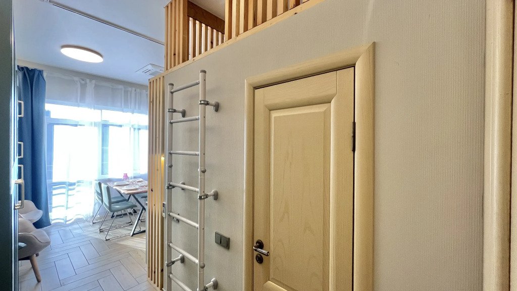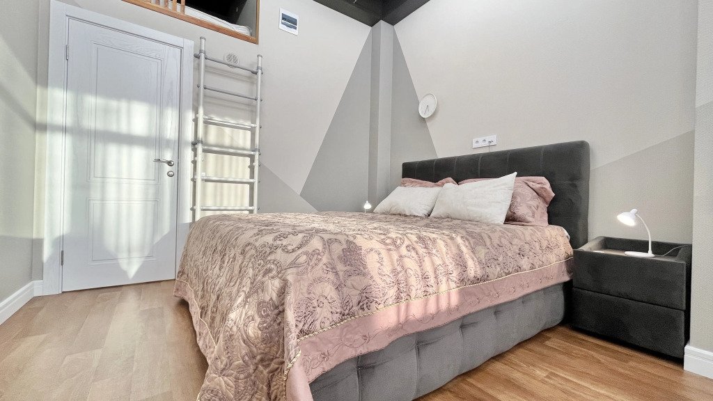 Двухместная квартира 0184 с отдельным входом двухуровневая с красивым видом из окна двуспальная кровать