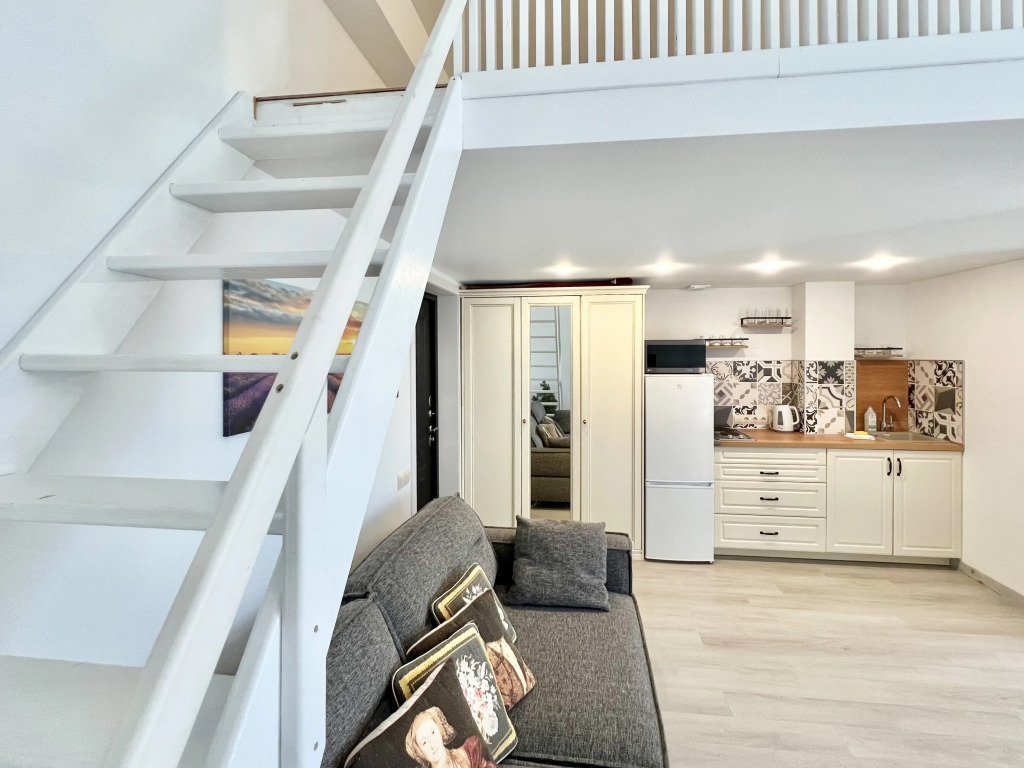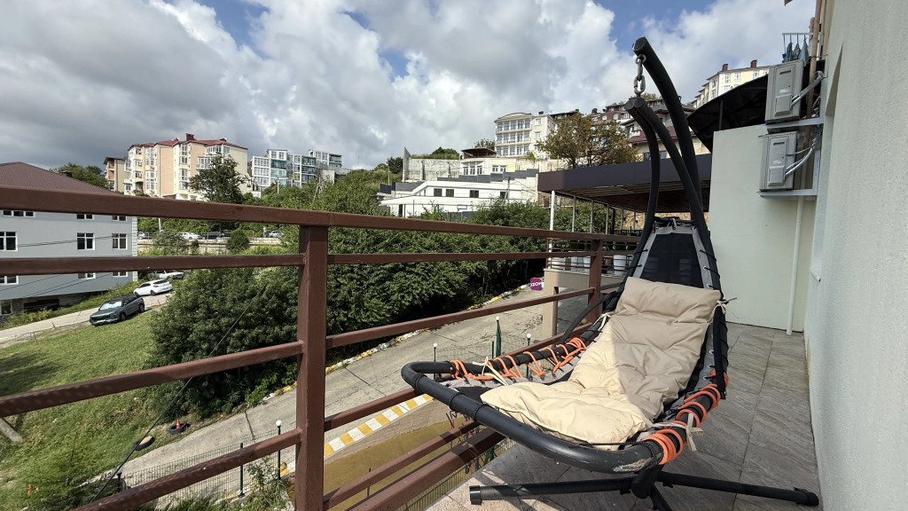 Двухместная студия 015Б двухуровневая с балконом и с видом на море двуспальная кровать