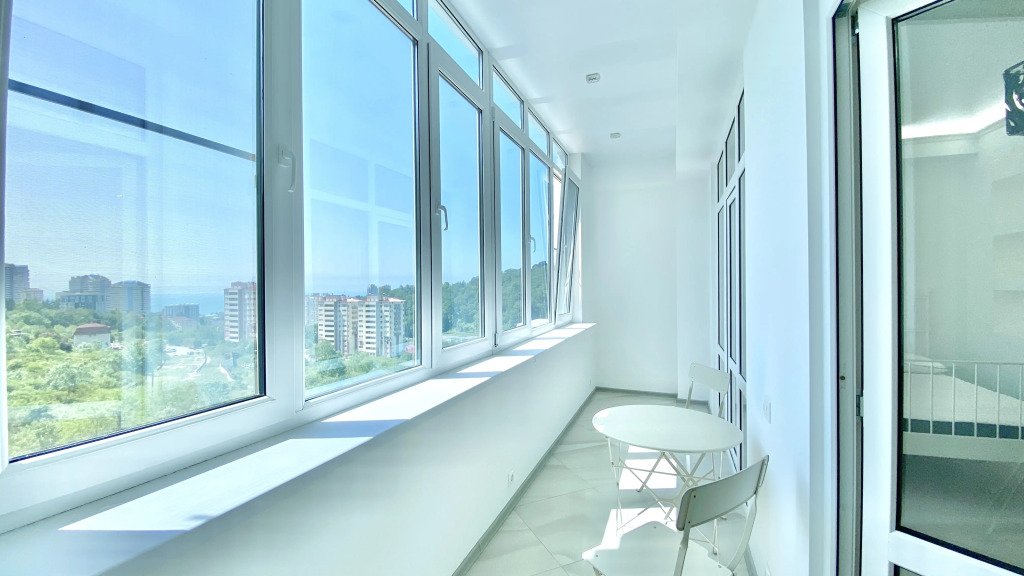 Двухместная студия 0114 с балконом и с красивым видом из окна двуспальная кровать