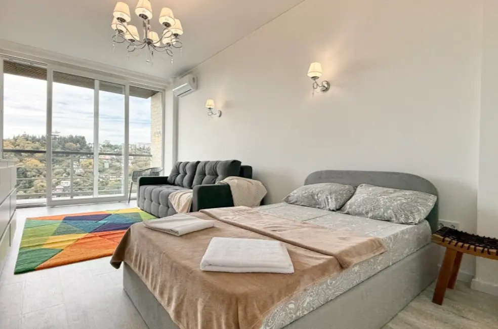 Двухместная квартира 0127 с видом на Дендрарий с видом на море двуспальная кровать