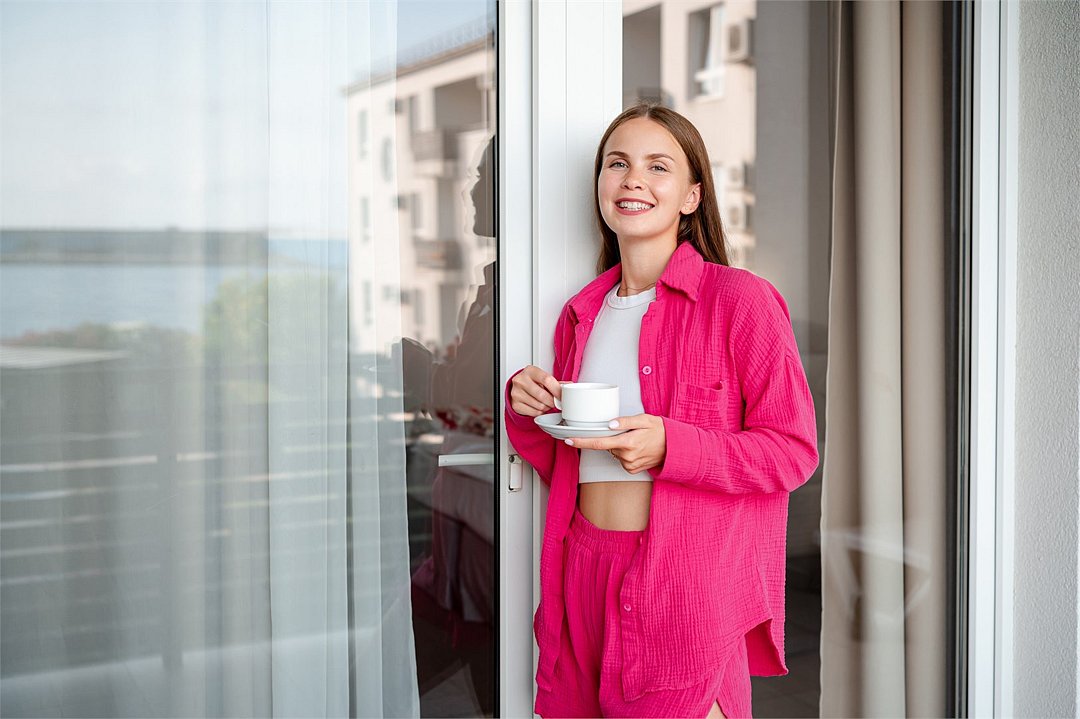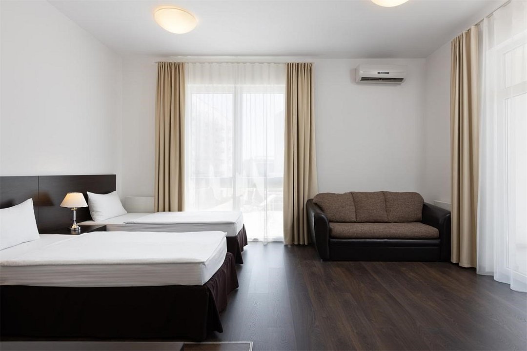 В отеле есть номера с оборудованной кухней, что позволяет гостям готовить свои собственные блюда. На первых этажах есть уютные террасы, а в номерах на втором этаже предлагаются просторные лоджии или широкие окна с панорамным обзором на Кавказские горы, морской порт и дендропарк.