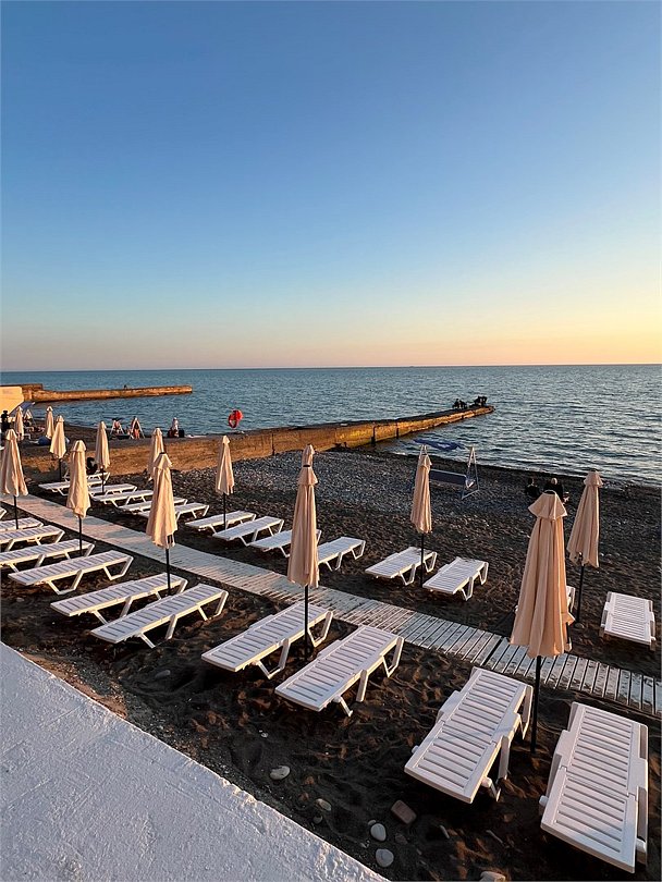 Оборудованный галечный пляж «Альбатрос» расположен на территории санатория Радуга.