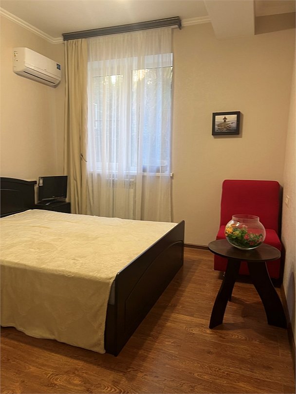 Wi-Fi, кондиционер, фен, банные полотенца, двуспальная кровать, шкаф для одежды, журнальный столик, зеркало, чайник, кресло, общая ванная комната, вид во двор, паркет, тумба, туалетные средства, телевизор с плоским экраном, мыло, без питомцевВ гостиничном номере