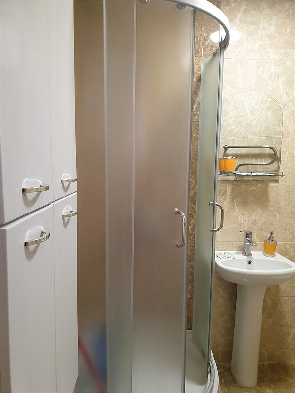 Новый номер с двуспальной кроватью, кондиционером, телевизором, креслом, журнальным столиком, чайником, сан.узлом с душевой кабиной (вход рядом с номером), полотенцами, гигиеническими средствами.Услуги и удобства