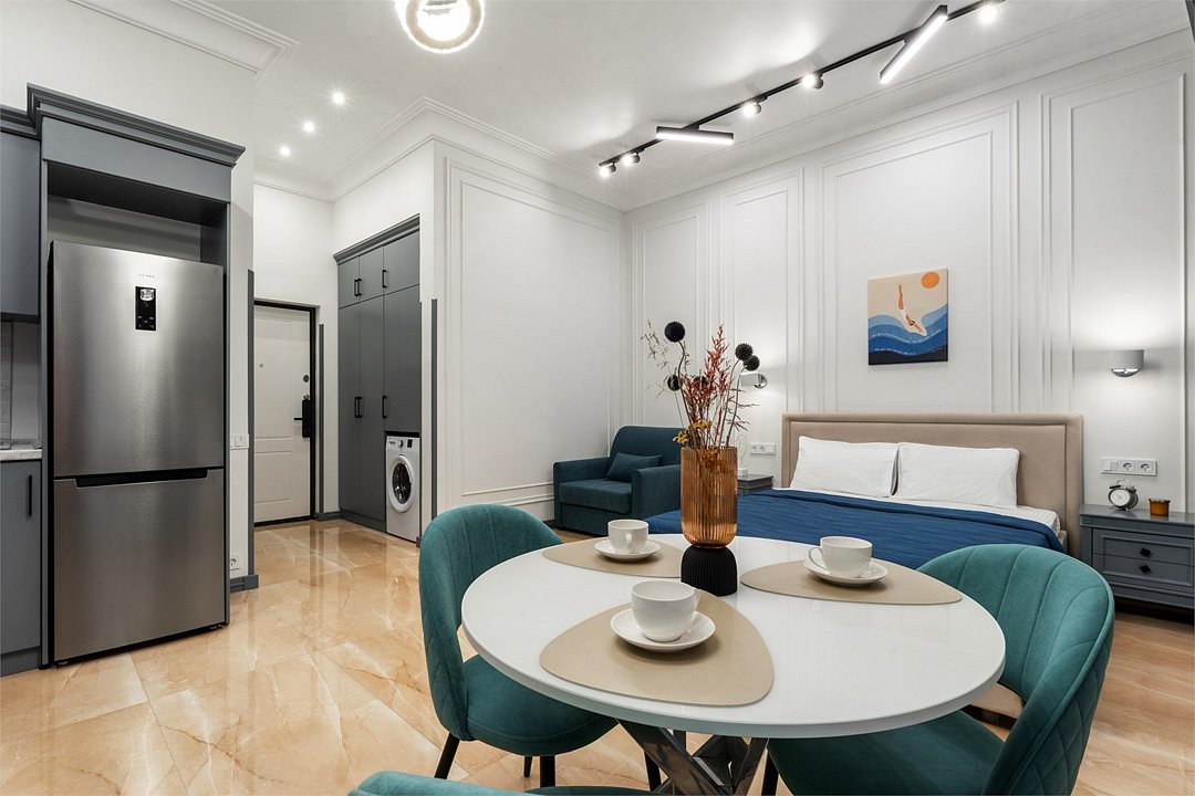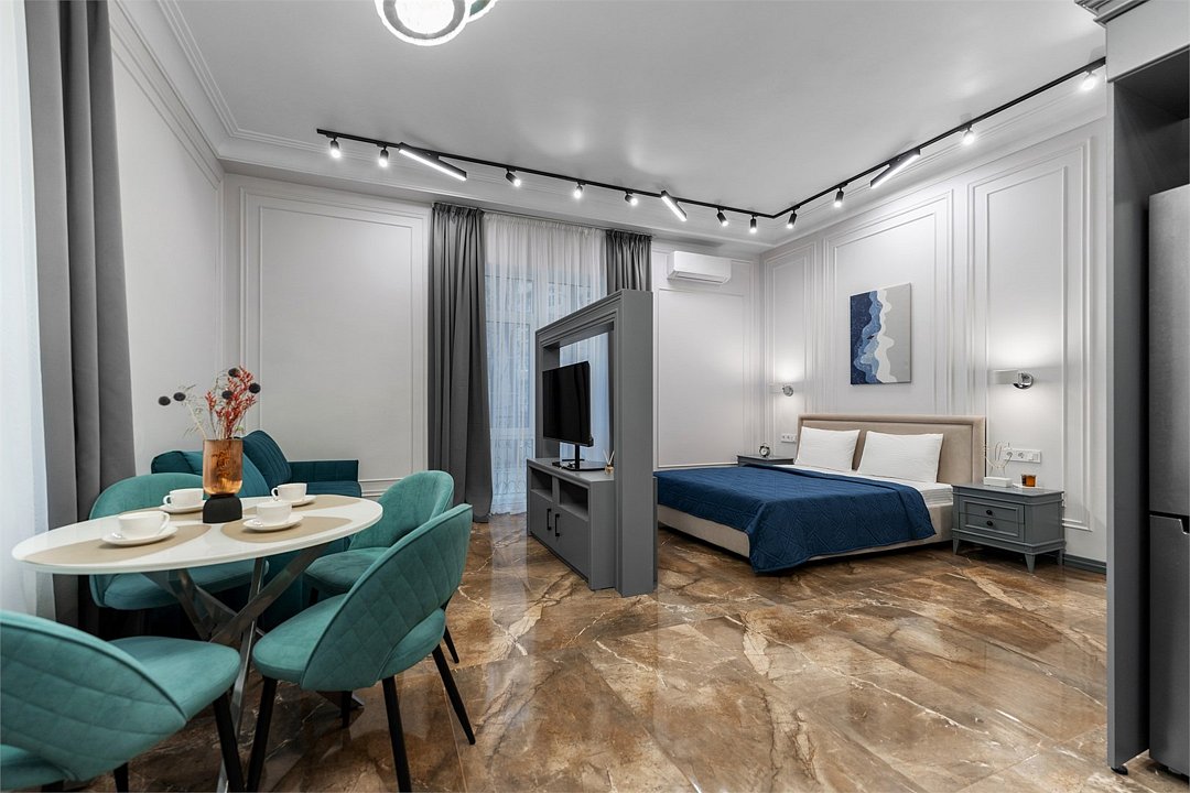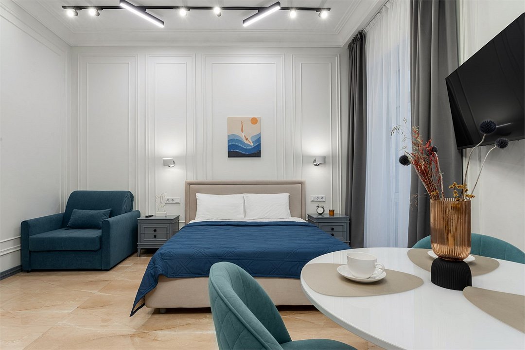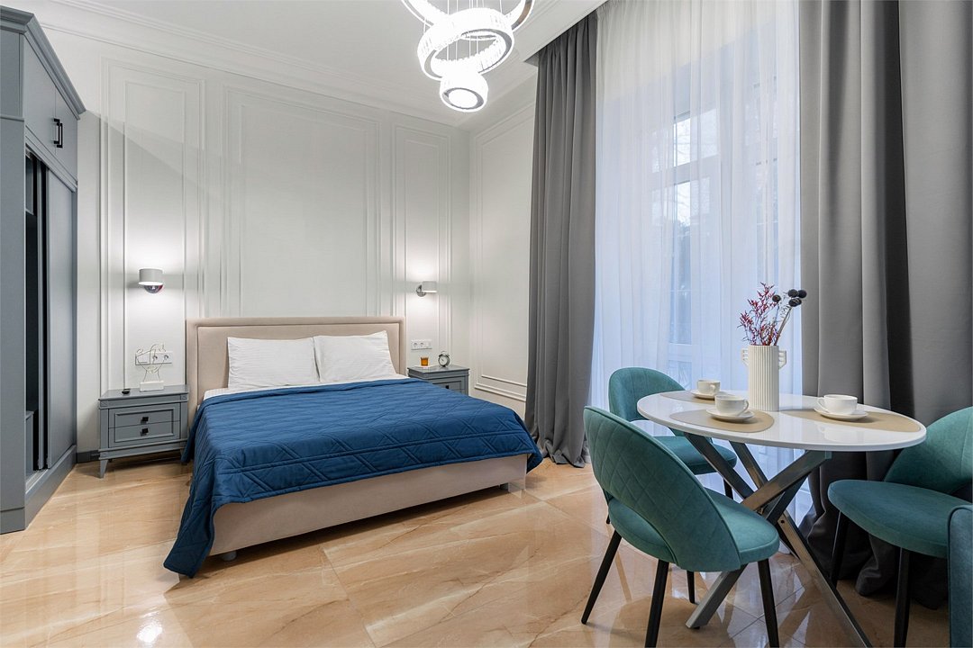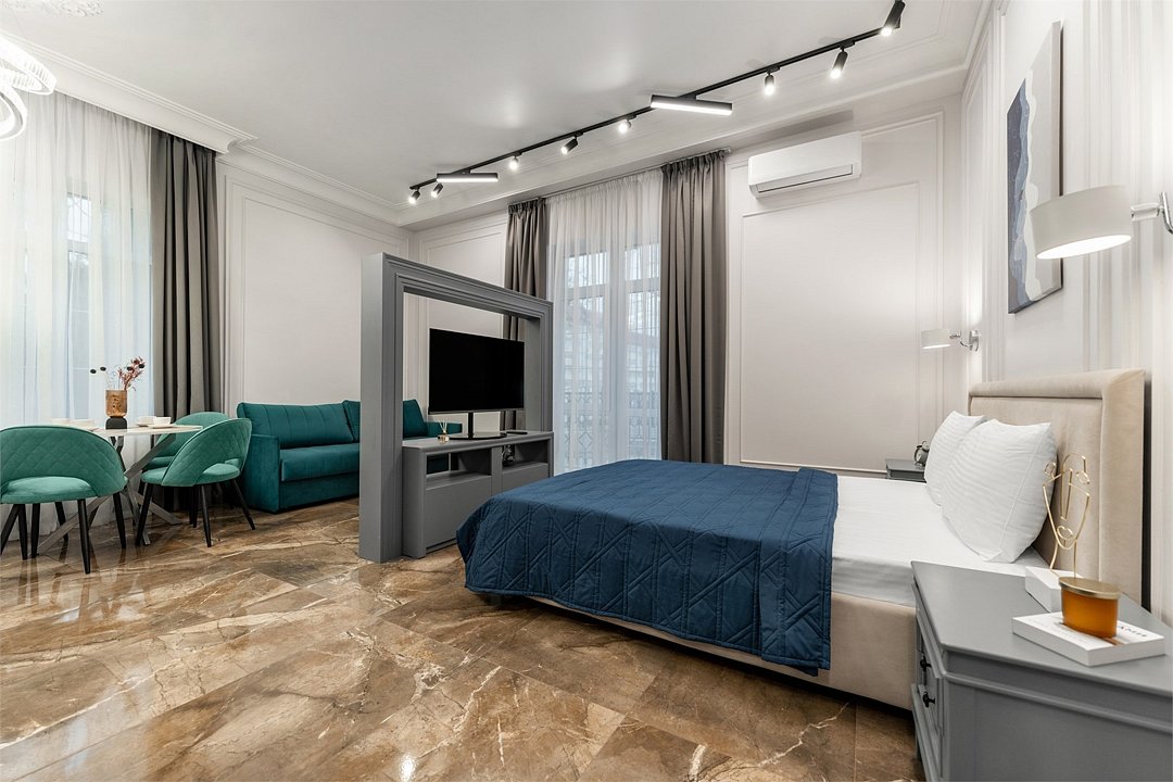 Двухместный номер с кухней-гостиной Спальная зона: Двуспальная кровать Полноценная кухонная зона с холодильником, СВЧ и всей необходимой посудой. Кондиционер, смарт-ТВ, бесплатный Wi-Fi, умная колонка Отлично подходит: Для пар и самостоятельных путешественников.Услуги и удобства