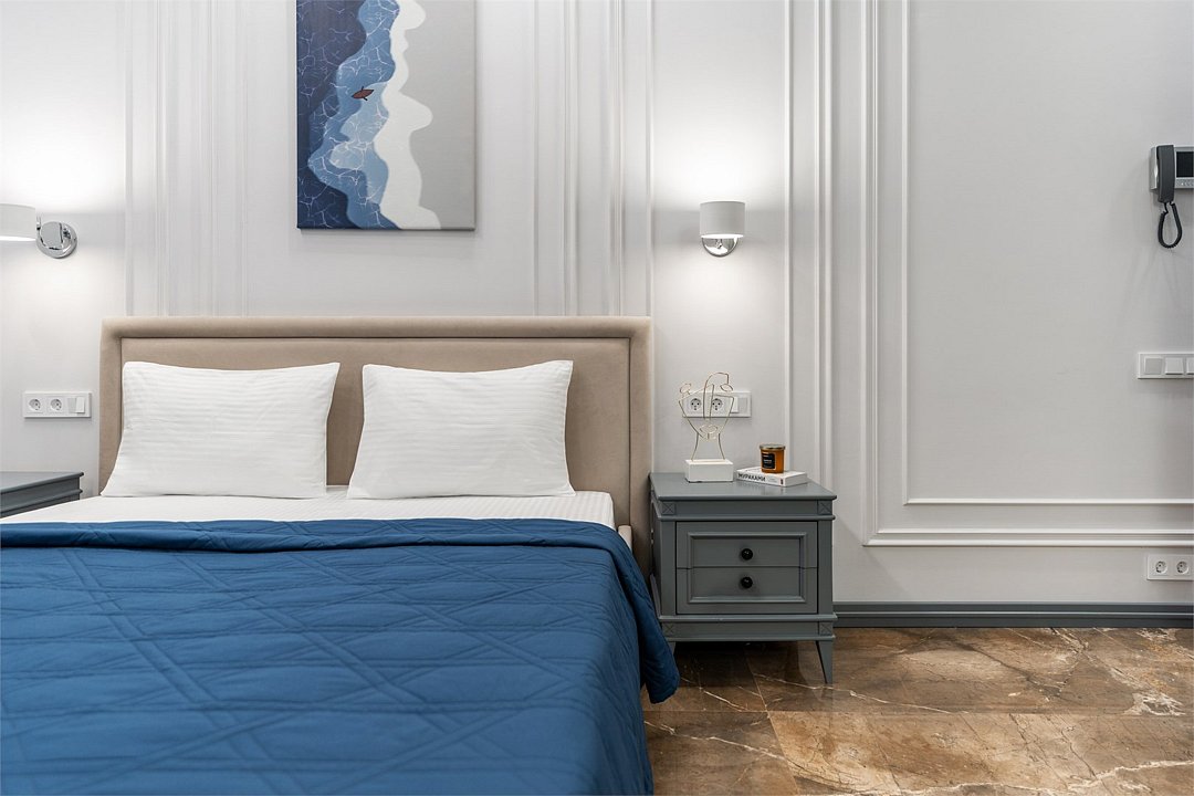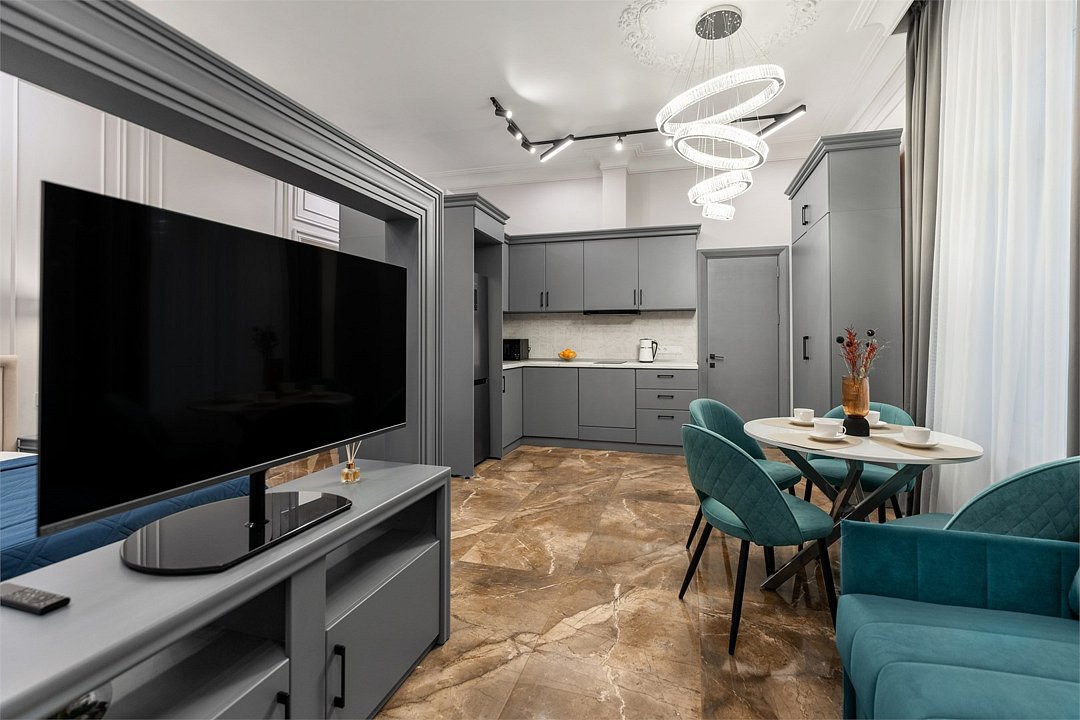 Трехместный номер с кухней-гостиной Вместимость: До 3-х гостей. Спальные места: Одна двуспальная кровать + удобное кресло-кровать Полноценная кухня с холодильником, плитой, СВЧ-печью и всей необходимой посудой Собственный санузел с душевой кабиной Кондиционер, Смарт-ТВ Бесплатный Wi-Fi Идеальный выбор для небольшой семьи или компании друзей, ценящих комфорт и самостоятельность.Услуги и удобства