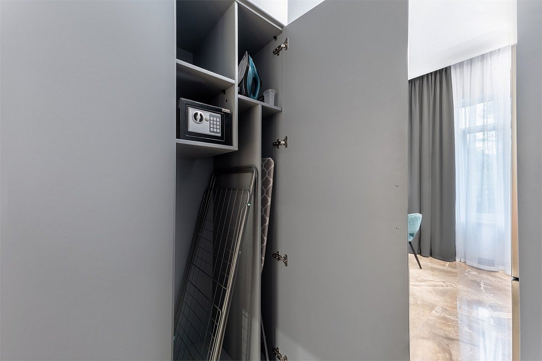 Wi-Fi, холодильник, кондиционер, фен, электронные замки, плита для приготовления пищи, микроволновая печь, утюг, душевая кабина, теплый пол, банные полотенца, тапочки, косметические средства, кровать «King size», гладильная доска, ортопедический матрас, тумбы, стулья, шкаф для одежды, вешалки, обеденный стол, кухня, набор посуды, сейф, стиральная машина, чайник, унитаз, плиточное покрытие, вид во двор, кухонная посуда, стаканы, столовые приборы, тумба, туалет, сплит-система, сушилка для белья, раскладное кресло, вид на горы, телевизор со Smart TV, теплые полы, номер для некурящих, гигиенический душ, кресло-кровать, умная колонка, мыло, затемняющая штора, можно с питомцамиВ номере