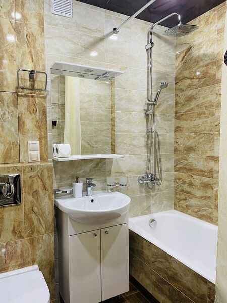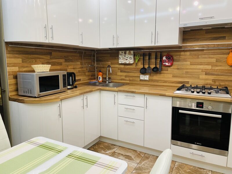 Для проживания предлагается просторная квартира, в которой имеется необходимая мебель и техника для проживания. Также в распоряжении гостей телевизор бесплатный wi-fi, кондиционер, собственная ванная комната с душем и феном.