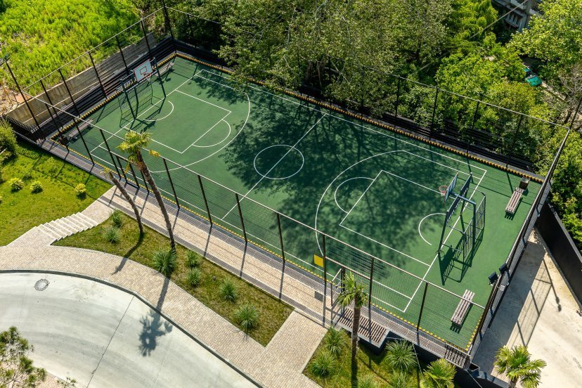 К услугам гостей футбольное поле, 6 игровых зон для детей, 4 workout площадки, зеленые зоны для прогулок и уникальная лаунж-зона «Патио», расположенная на крыше, откуда открывается потрясающий вид на море и закат.