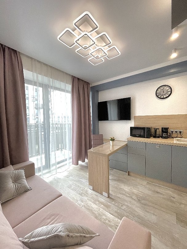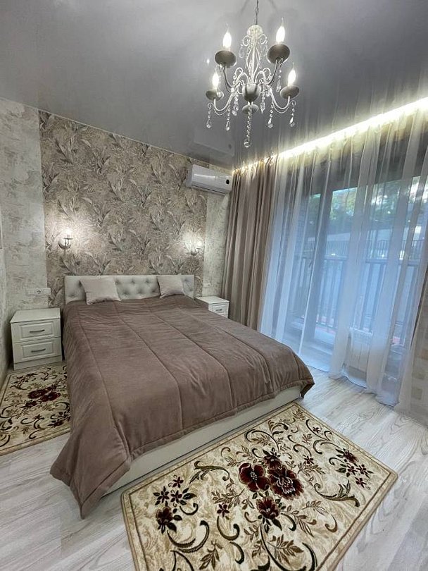Апартаменты располагаются в многоэтажном жилом доме с лифтом. К размещению гостей предлагаются апартаменты с максимальным уровнем комфорта, оборудованные удобной мебелью, сплит-системой, телевизором, доступом к интернету, гладильными принадлежностями и индивидуальной ванной комнатой. У отдыхающих будет возможность наслаждаться видами на цветущий внутренний дворик, отдыхая на балконе номера. Кухня оснащена гарнитуром, плитой, холодильником, микроволновкой, набором посуды и всеми необходимыми столовыми приборами для приготовления вкусных блюд.