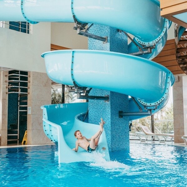 Читать полностьюНа первом этаже SPA-зоны расположен крытый бассейн, оборудованный водной горкой. Это отличное место, где вы сможете зарядиться энергией, а ваши дети весело проведут время. Бассейн функционирует круглый год, его вода постоянно подогревается, обеспечивая комфортные условия для купания в любое время. Дети до 16 лет могут посещать бассейн в сопровождении родителей.