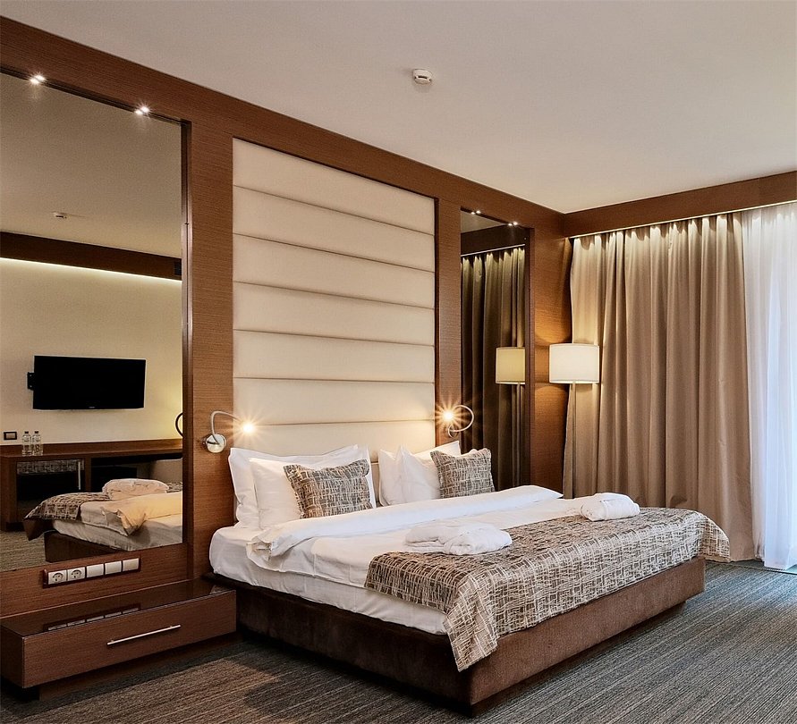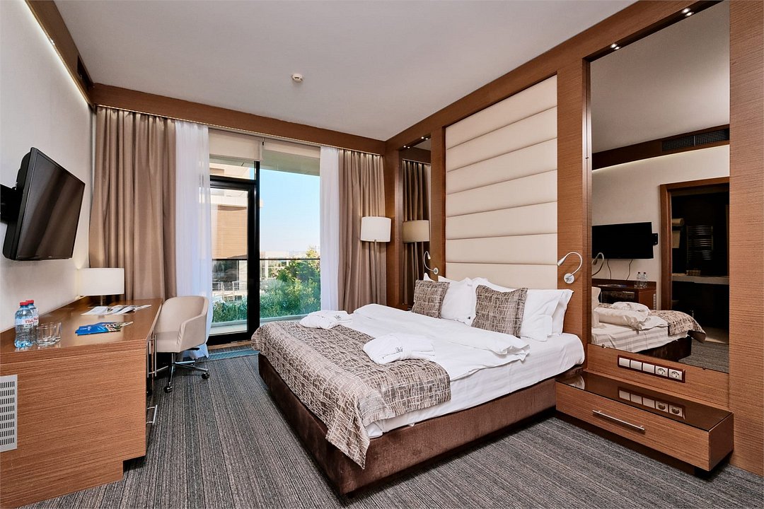 На территории курортного комплекса есть все, что нужно для разнообразного отдыха: spa-центр с аква-зоной, бары, ресторан, тренажёрный зал, открытый и закрытый бассейны, термальный комплекс. В теплые дни гости могут отдохнуть на летней террасе ресторана.