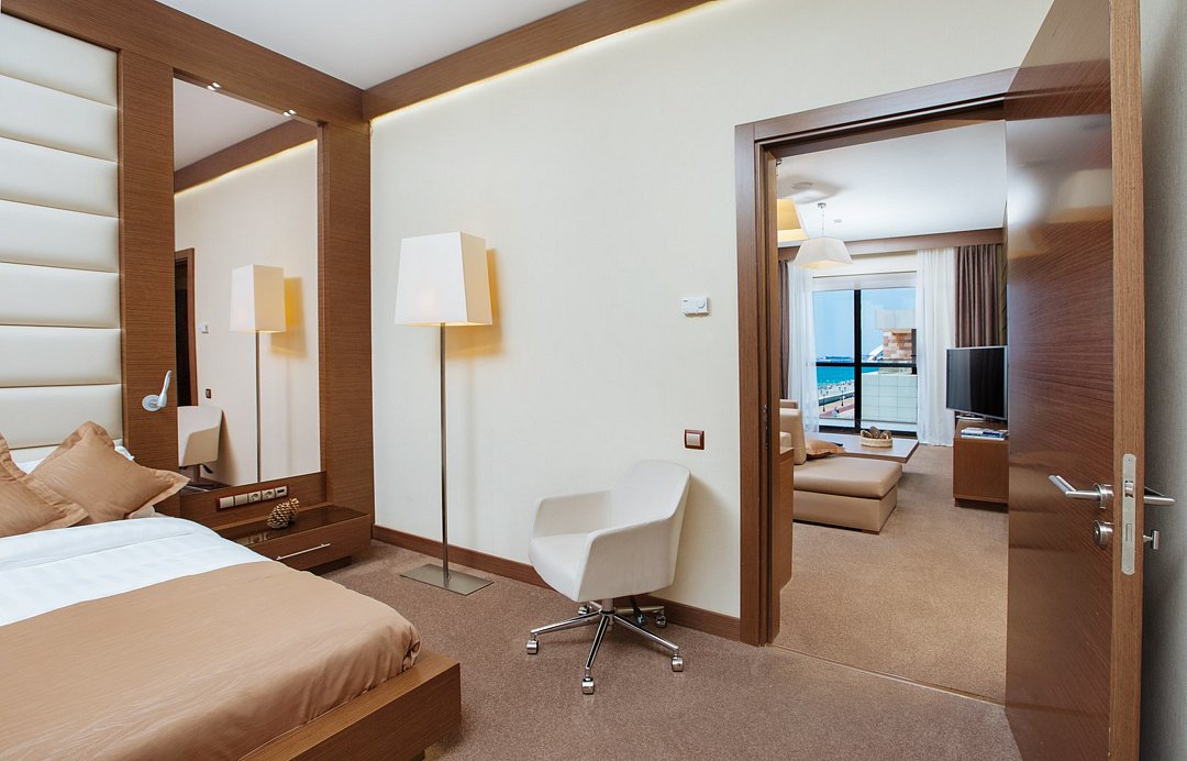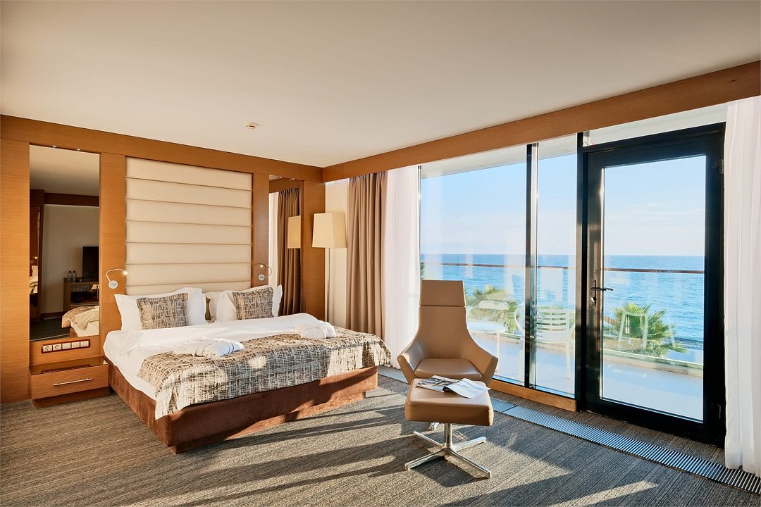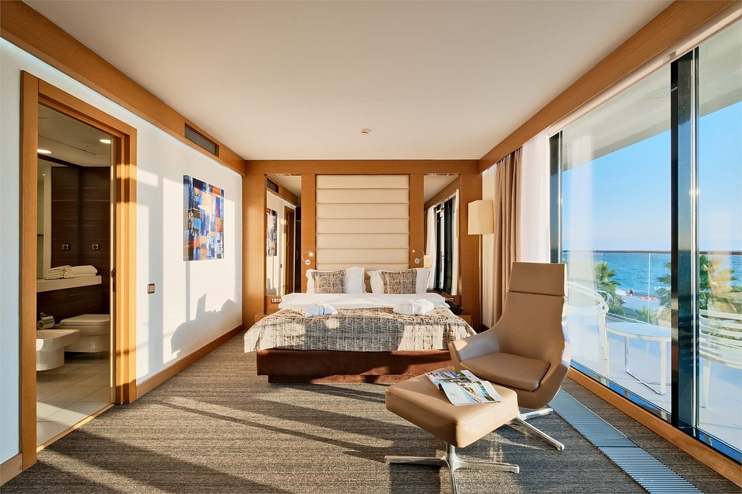 Роскошные номера на первой береговой линии, с уютной спальней, просторной гостиной и видом на море, гардеробной, большой ванной комнатой и террасой.Услуги и удобства