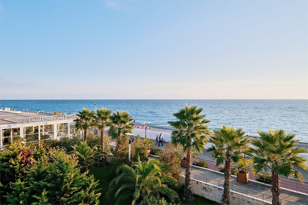 Двухкомнатный номер-студио с видом на море - отличный выбор для компании из нескольких человек или семьи. В каждой комнате двухместные, большие кровати, индивидуальная ванная комната с душевой и самым необходимым для комфортного пребывания. Большая терраса для принятия солнечных ванн, впечатляет потрясающим видом на Черное море, южные закаты и цветущий парк отеля. Размещение в Вилле (второй этаж).Услуги и удобства
