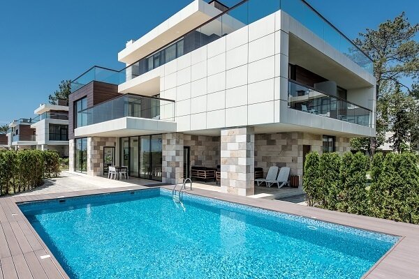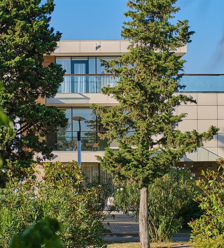 На территории парк-отеля гостей ждет уют, спокойный отдых и уединение – виллы комплекса скрыты от посторонних зеленью деревьев. У каждой виллы есть цветущий сад и бассейн, отдельная парковочная зона.
