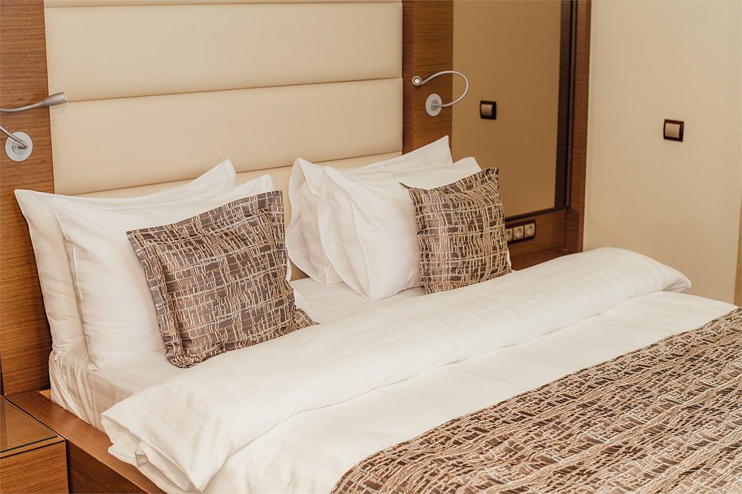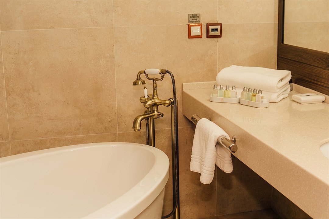 Просторный, в сдержанном стиле двухместный номер категории Делюкс. Расположен на третьем этаже Виллы. Идеальная терраса по периметру всего номера, с видом на цветущий парк отеля.Услуги и удобства