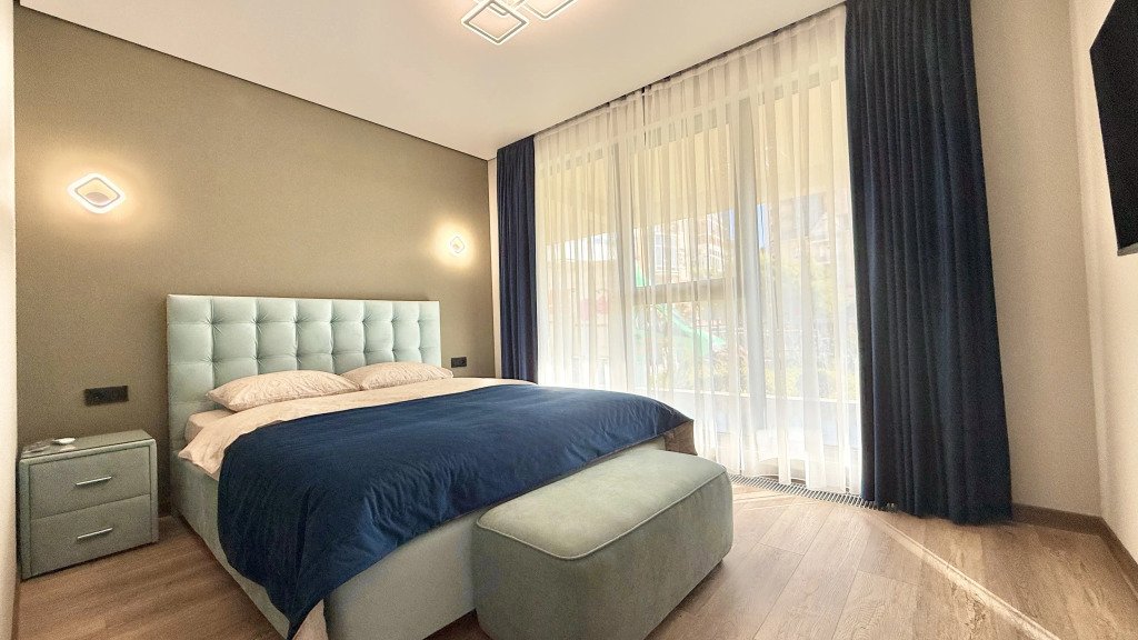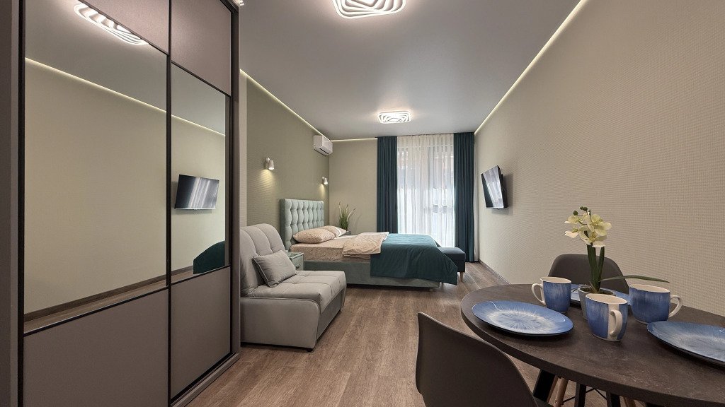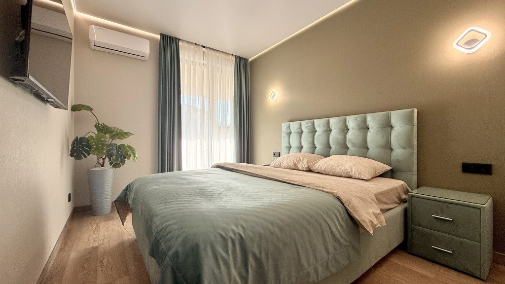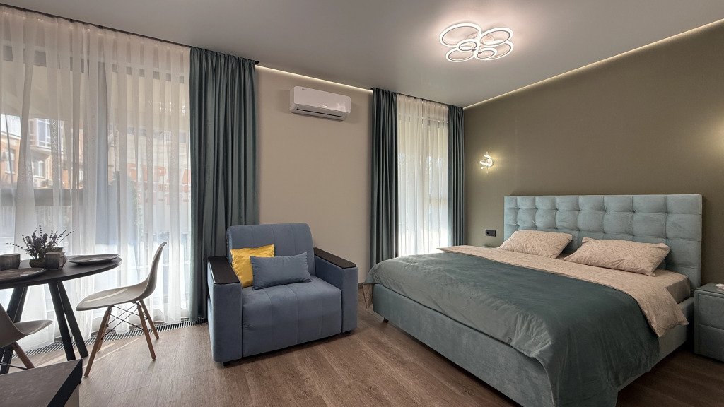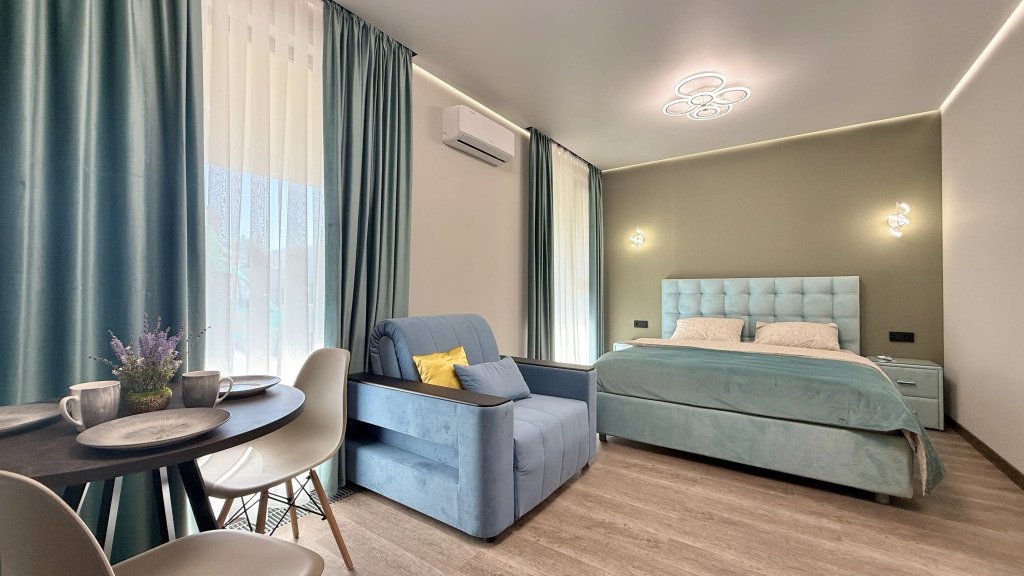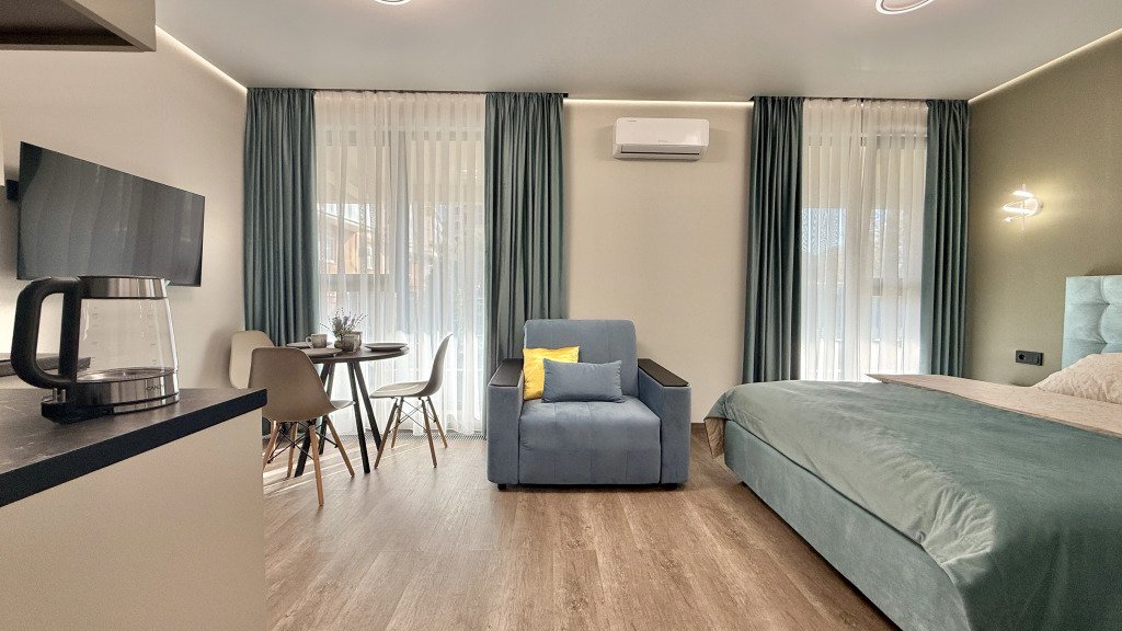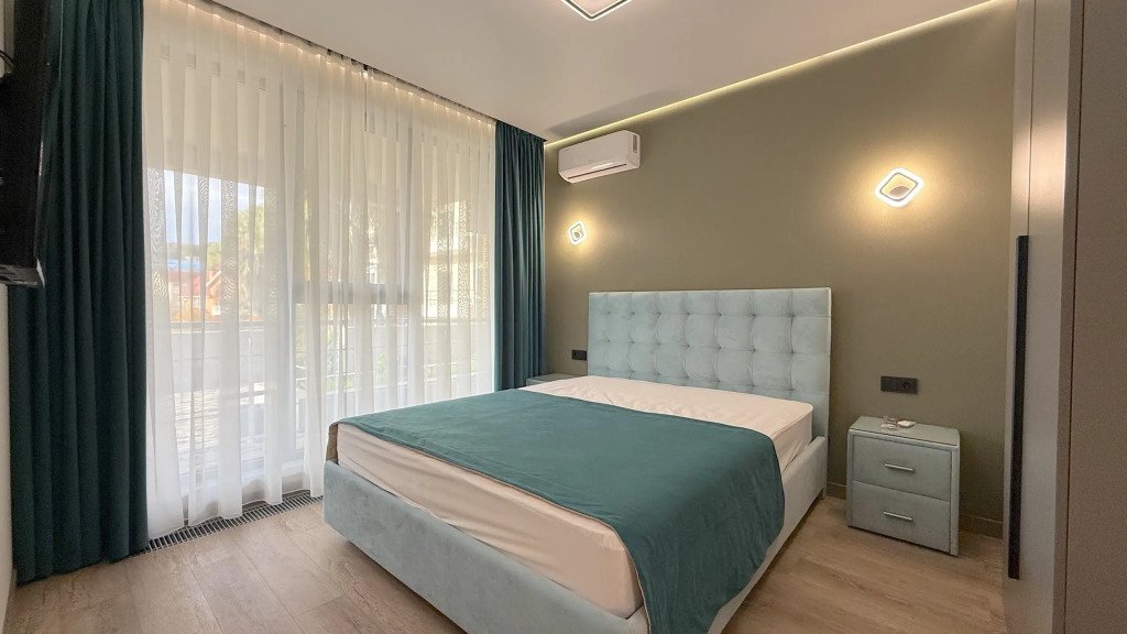 Номер уютно обставлен и оснащён необходимым, чтобы отдохнуть после долгого и насыщенного дня. Имеются телевизор. Оснащение зависит от выбранной категории номера.