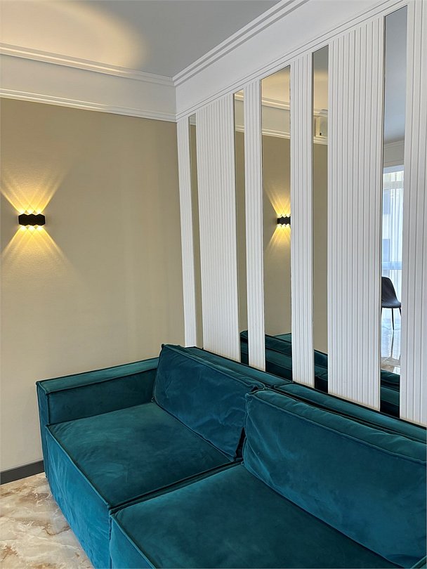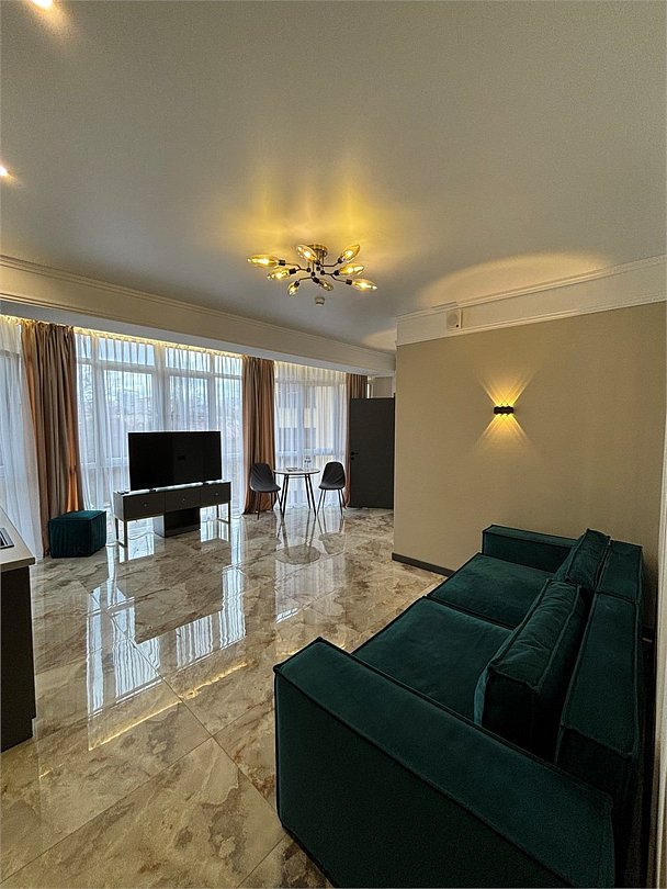 Апартамент создан для настоящих ценителей комфортной жизни и тех, кто не привык к компромиссам и желает жить с максимальным комфортом. Гармоничное сочетание современного дизайна с продуманным интерьером содействуют полноценному отдыху и успешному решению рабочих вопросов. Спальные места представлены большой двуспальной кроватью с удобным ортопедическим матрасом и раскладываемым двуспальным, не менее комфортным диваном с независимым пружинным блоком. Кондиционер, кухонный блок с варочной панелью и вытяжкой, обеденная зона со столом и мягкими стульями, барный холодильник, микроволновая печь, электрический чайник, комплект посуды и столовых приборов. Просторный санузел с душевой кабиной, стиральная машина, полотенцесушитель, фен, гигиенические принадлежности, утюг, гладильная доска и сушилка для белья. В общем Вы найдете всё для безупречного отдыха.Услуги и удобства