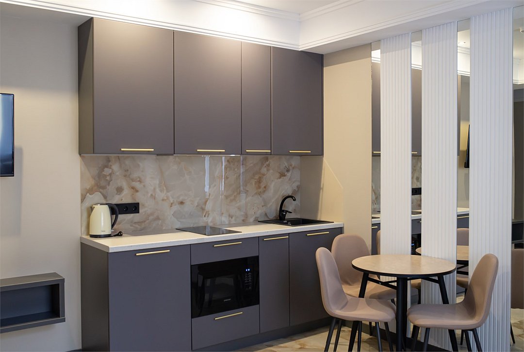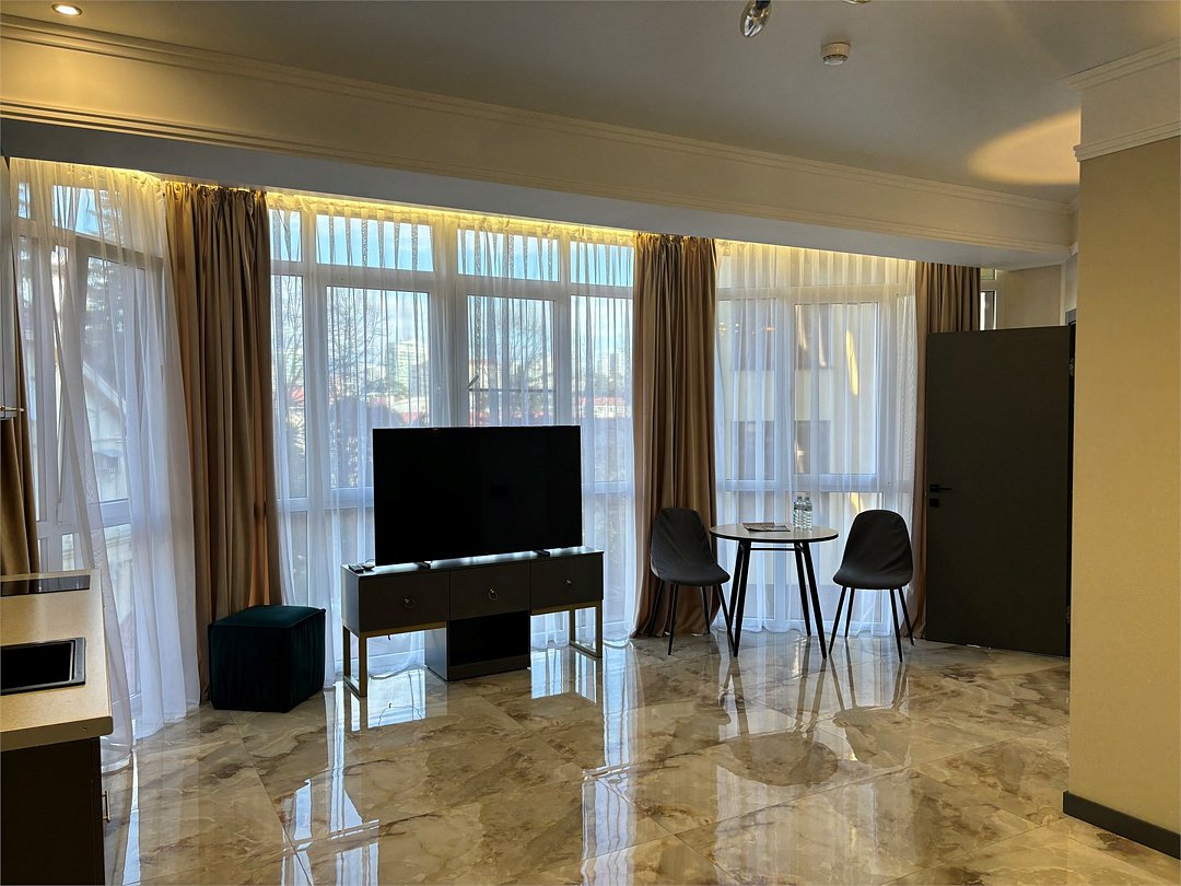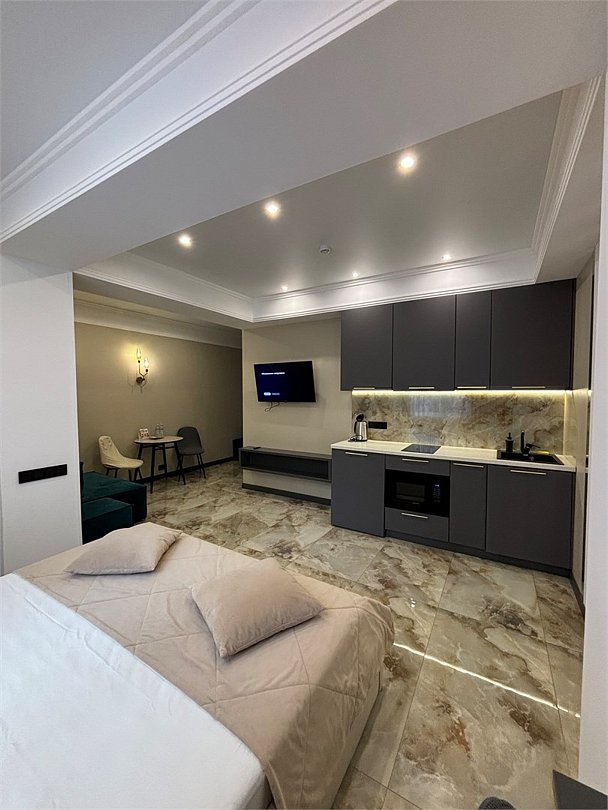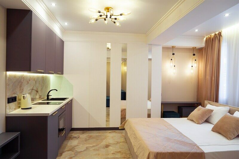 Насладитесь комфортом просторных апартаментов с собственными кухонными блоками, расположенных в самом центре Сочи.