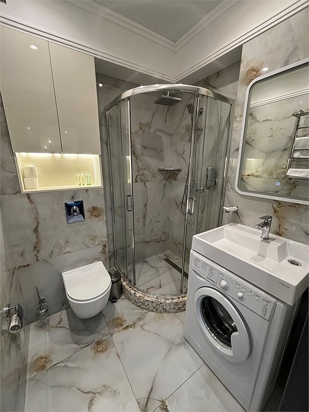 Wi-Fi, кондиционер, светильник, фен, электронные замки, плита для приготовления пищи, микроволновая печь, утюг, душевая кабина, водонагреватель, теплый пол, банные принадлежности, банные полотенца, пляжные полотенца, тапочки, гигиенические средства, кровать «Queen size», гладильная доска, диван, стулья, шкаф для одежды, вешалки, зеркало, звуконепроницаемые стены и окна, набор посуды, обслуживание номеров, сейф, стиральная машина, чайник, унитаз, раковина, мягкая мебель, питьевая вода, отопление, душ, вид на город, плиточное покрытие, вид во двор, кухонная посуда, стаканы, кухонная утварь, столовые приборы, стул, стол, туалетные средства, туалет, цифровое тв, раскладное кресло, телевизор с плоским экраном, мини-холодильник, мини-кухня, телевизор со Smart TV, номер для некурящих, кресло-кровать, уборка номера, мыло, затемняющая штора, без питомцевВ аппартаментах