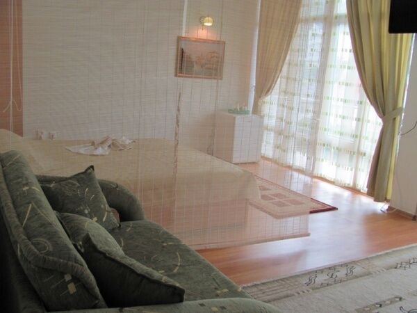 Пляж галечный, бесплатный. До пляжа 10 минут по прямой, широкая пляжная зона. Пляж оборудован всем необходимым для разнообразного отдыха: водные и воздушные аттракционы, развлечения, бильярд и т.д.