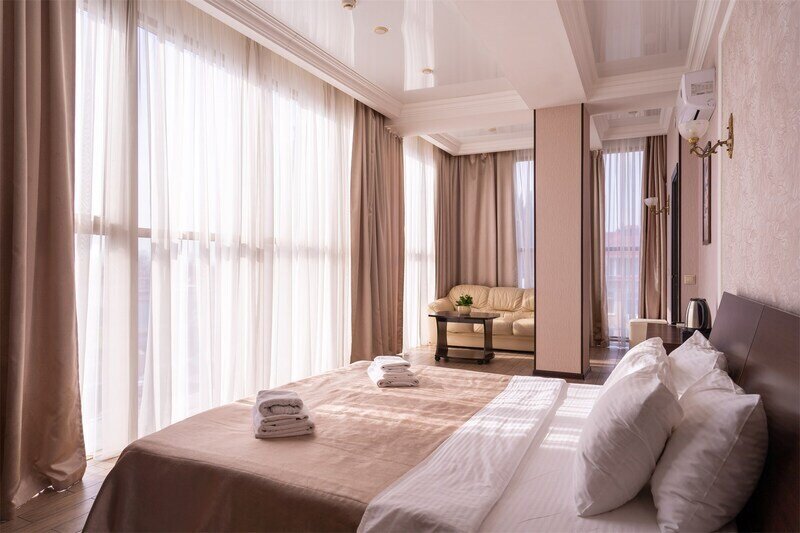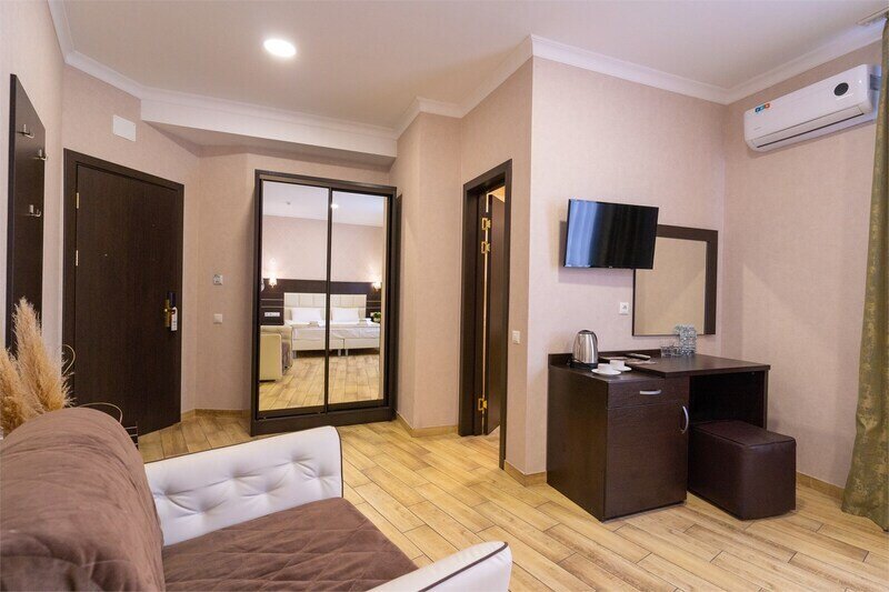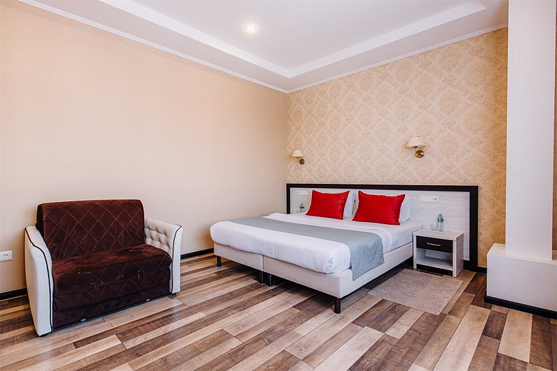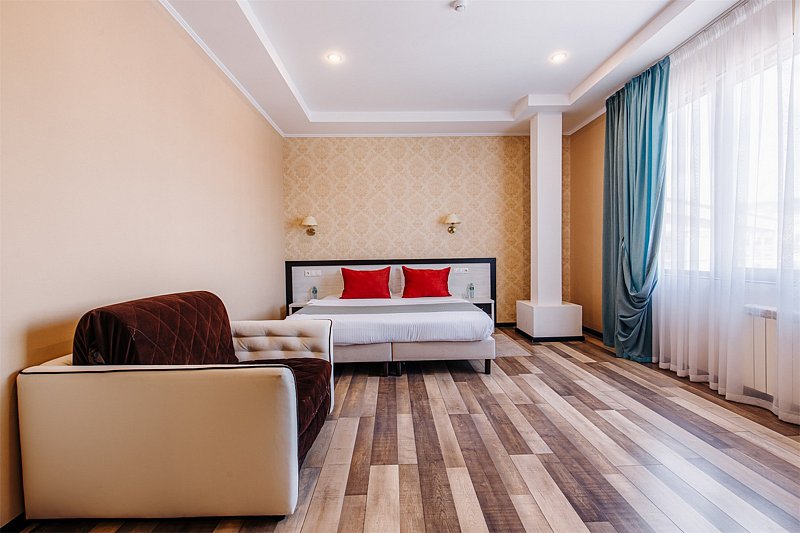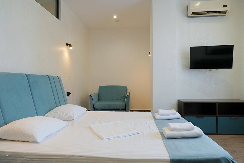 Просторный Двухкомнатный номер площадью 50 кв. м с одной просторной кроватью. Размещение для 2 гостей с возможностью установки дополнительного места для 2 гостей.