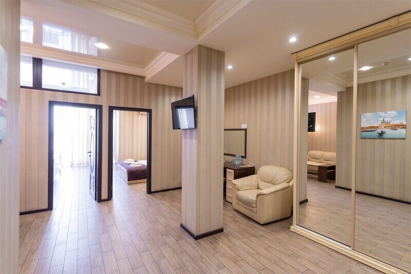 Просторный Трехкомнатный номер площадью 60 кв м с двумя просторными кроватями. Размещение для 4 гостей с возможностью установки дополнительного места для 2 гостей.