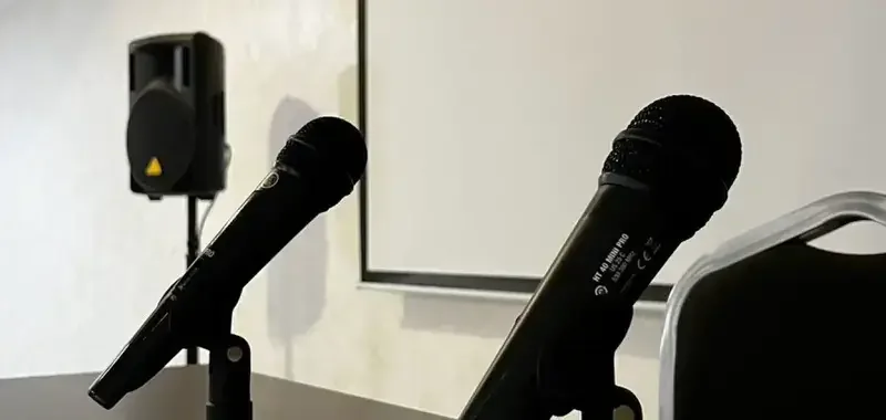 - звуковым оборудованием (микшерный пульт, акустическая система, 2 микрофона).